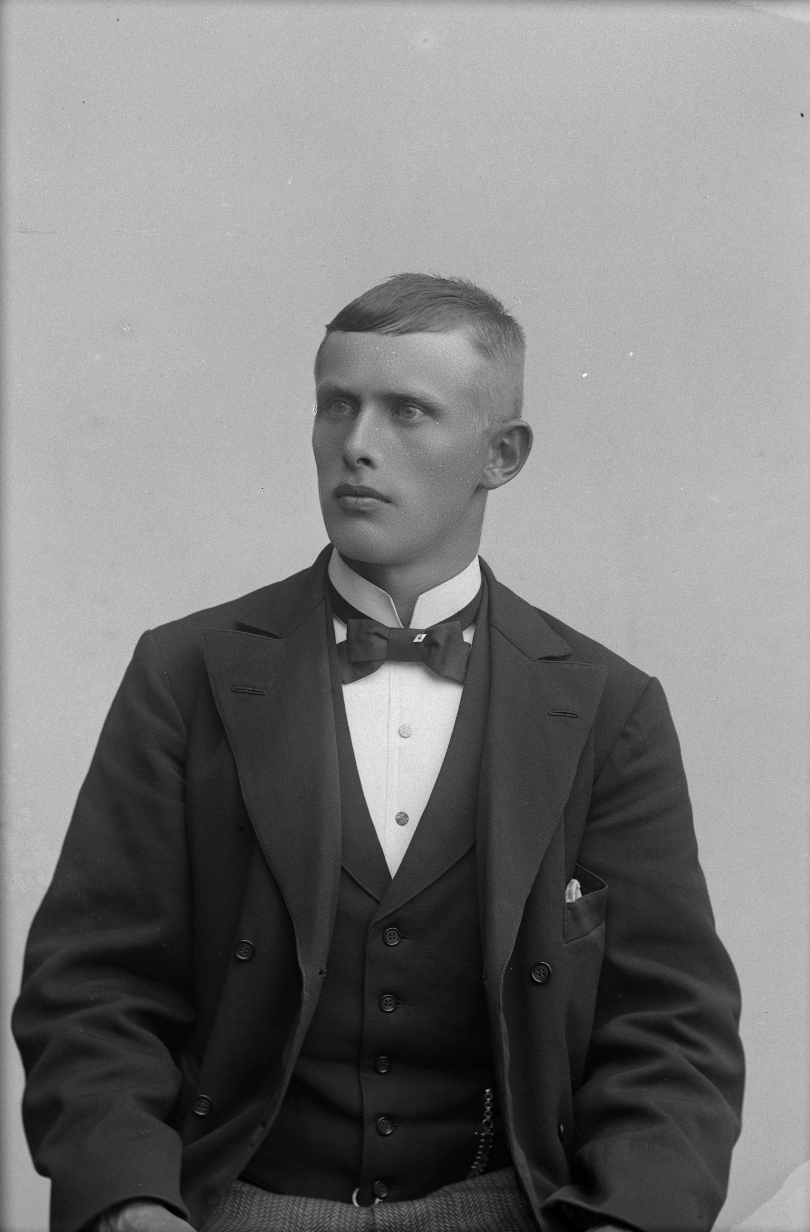 Beskrivning: Porträtt i halvfigur av Tor Warn.