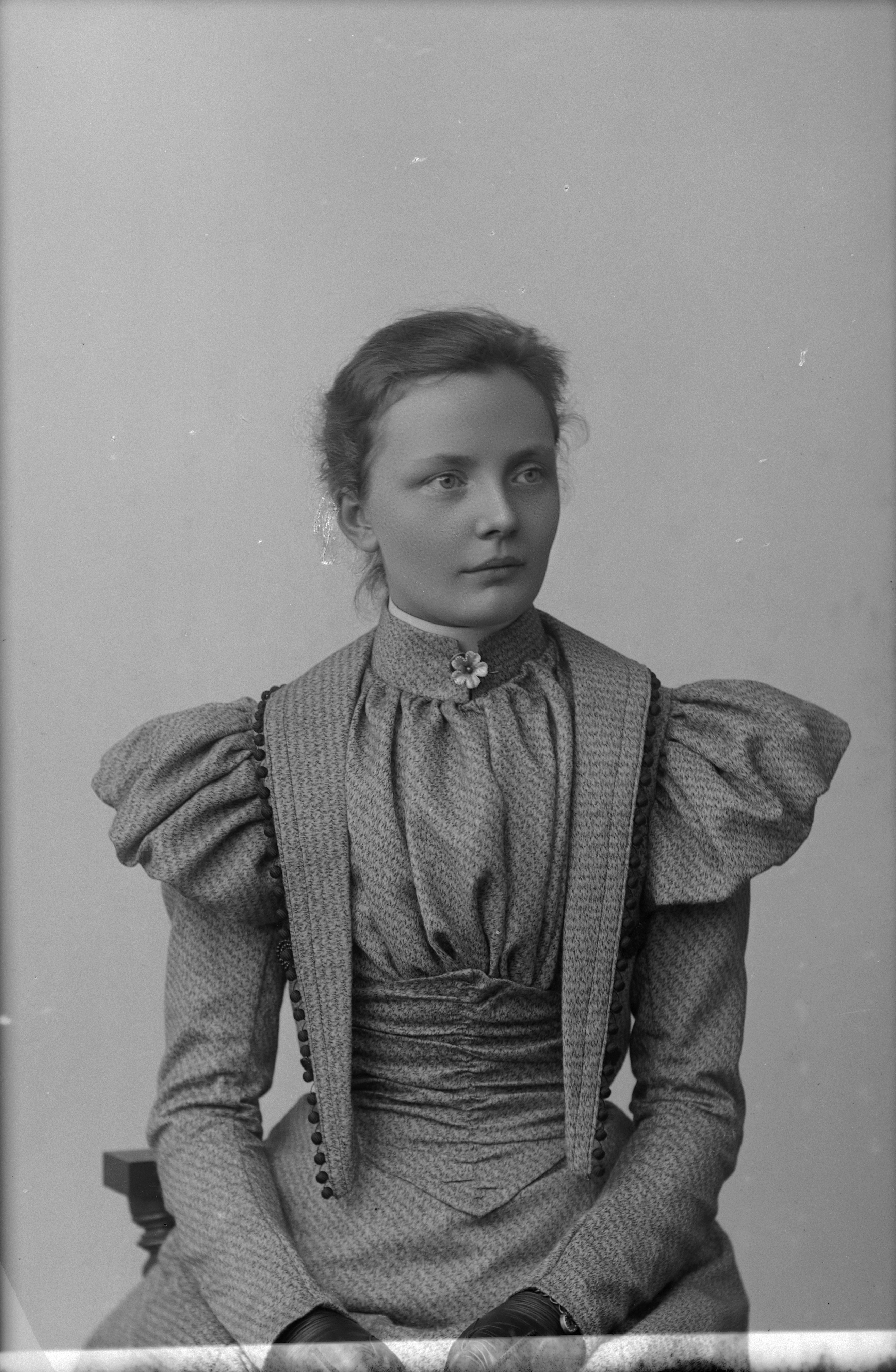 Beskrivning: Porträtt i halvfigur av Emma Lundin.