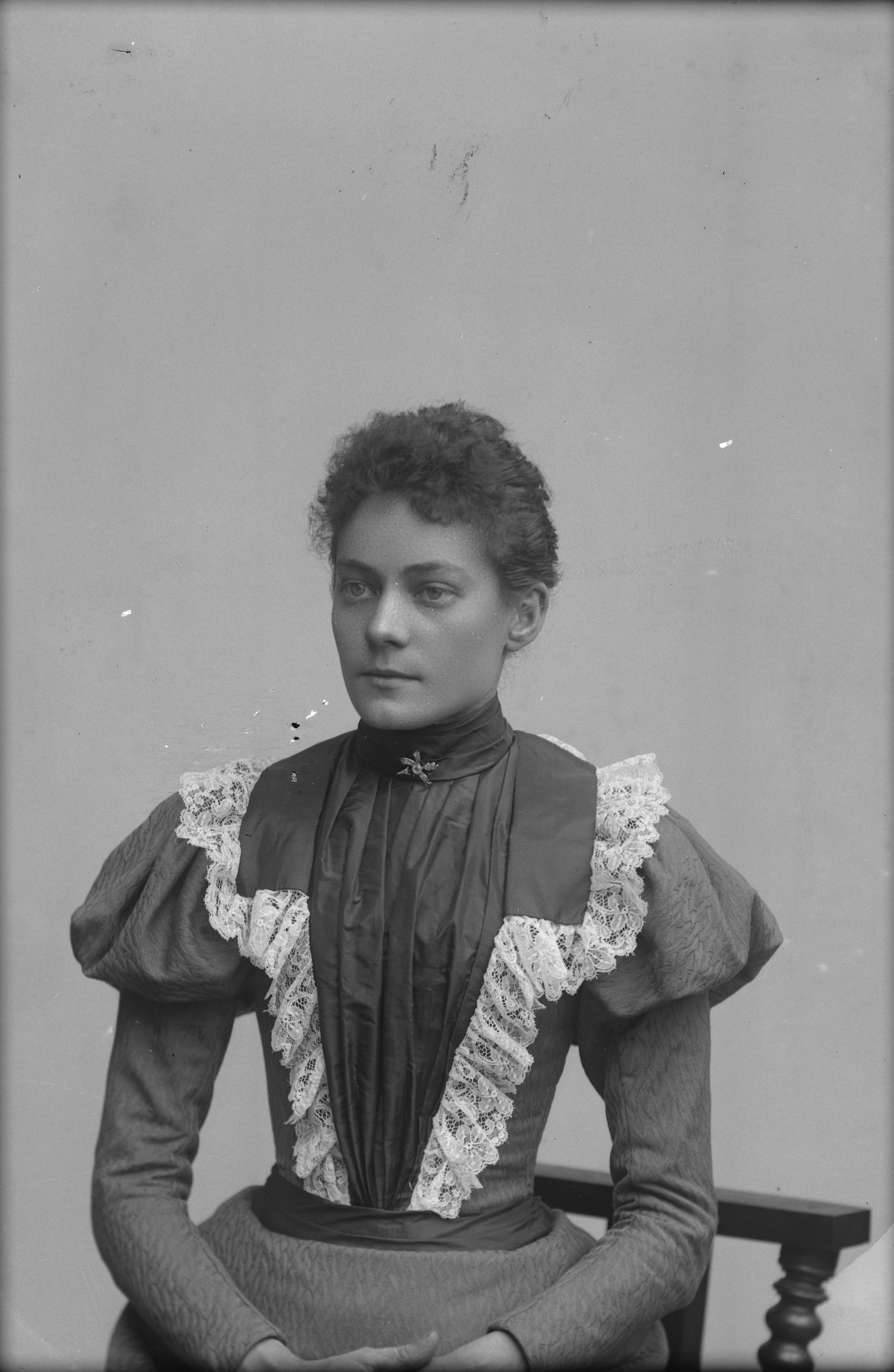 Beskrivning: Porträtt i halvfigur av Constance Green.