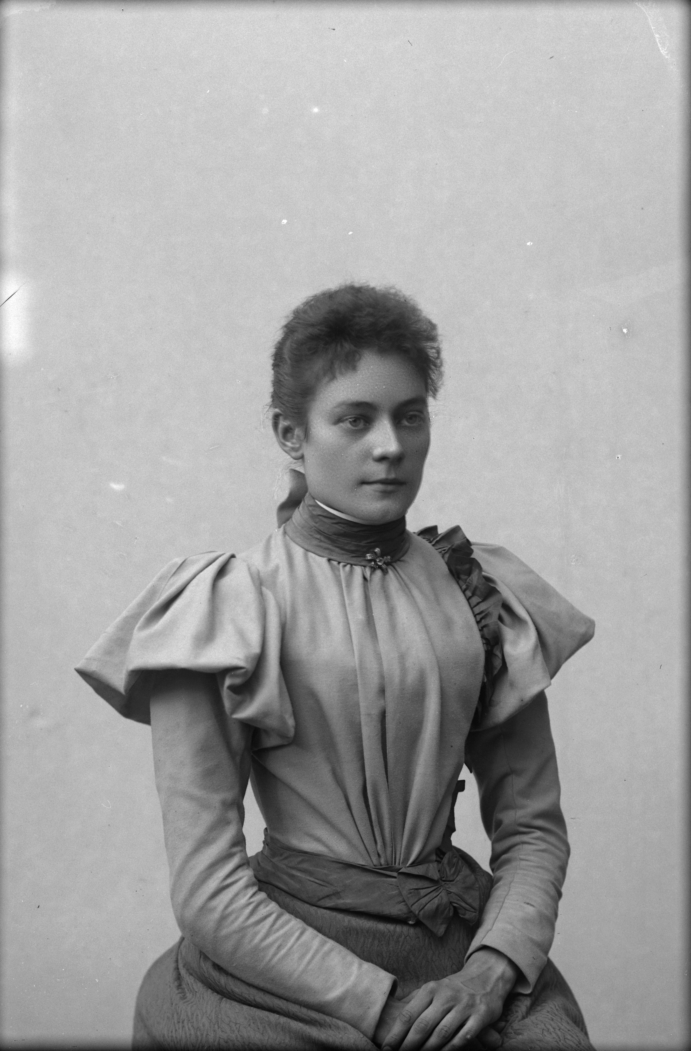 Beskrivning: Porträtt i halvfigur av Constance Green.