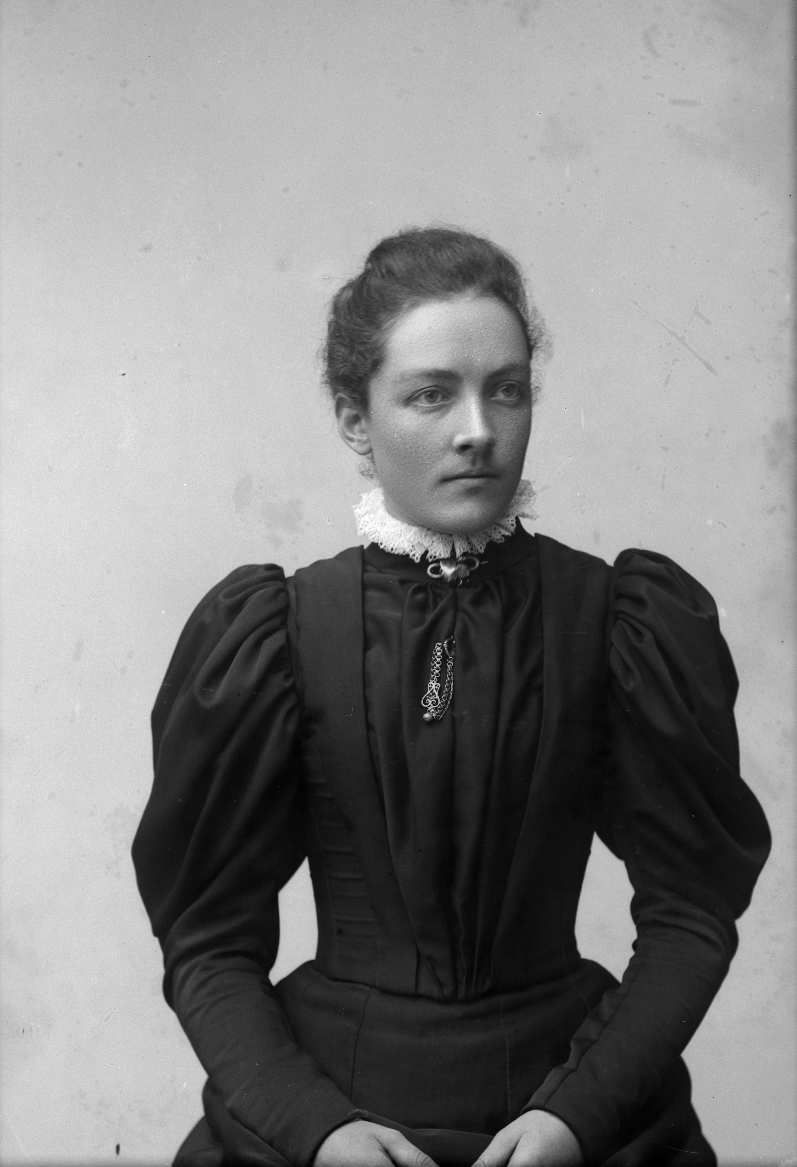 Beskrivning: Porträtt i halvfigur av Ida Malmros.