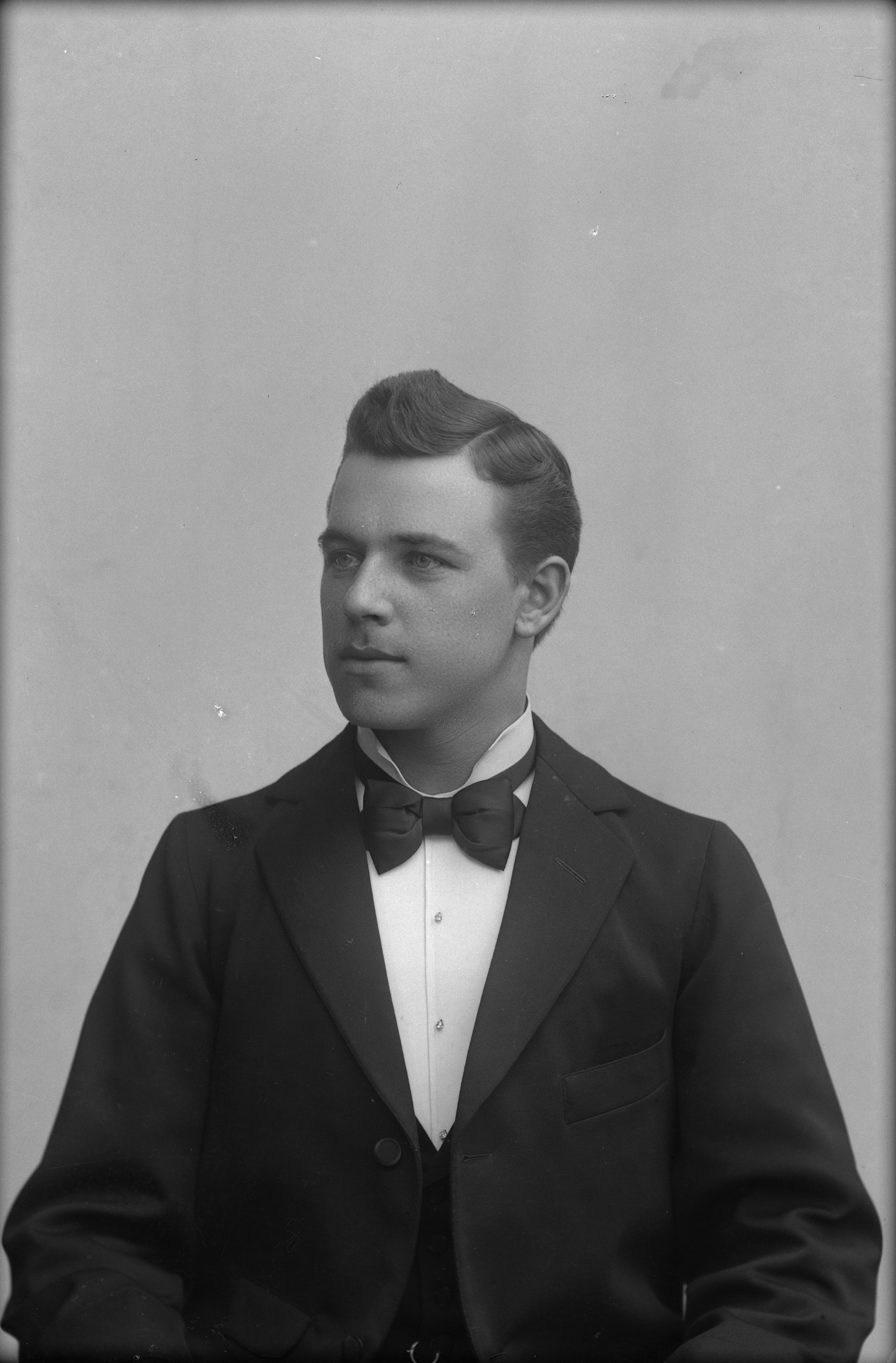 Beskrivning: Porträtt i halvfigur av B. Larsson.