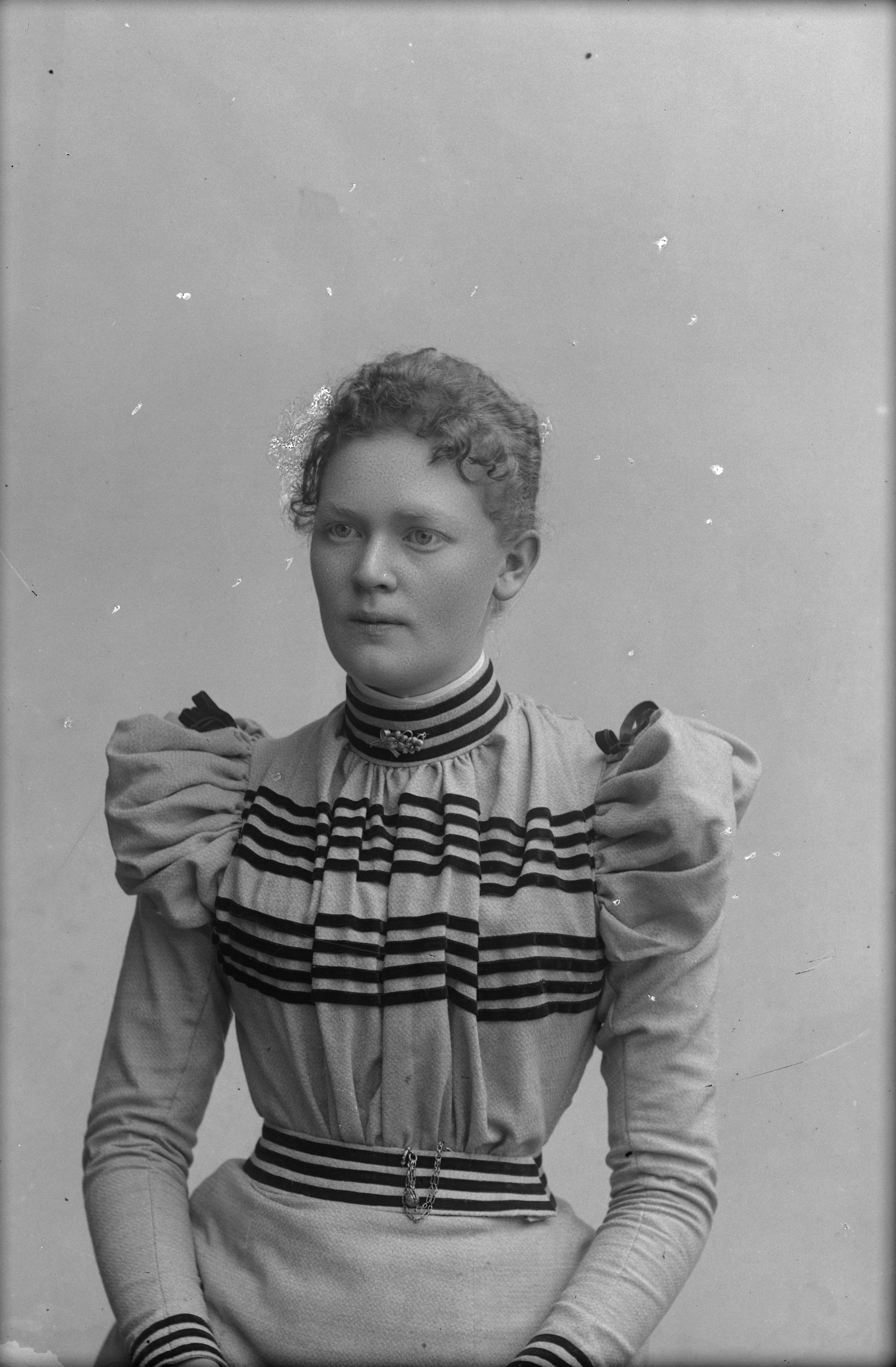 Beskrivning: Porträtt i halvfigur av Ida Roslund.