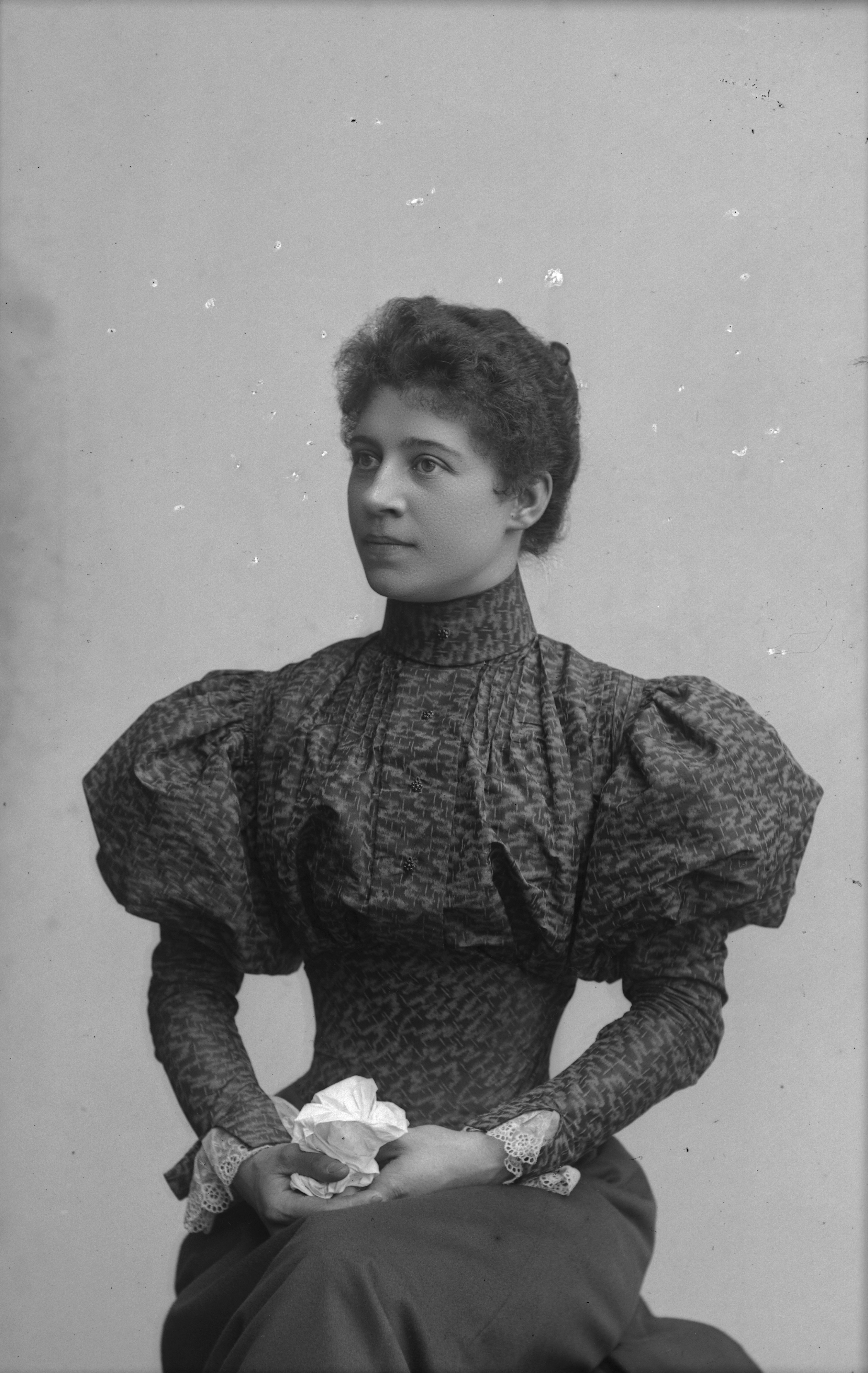 Beskrivning: Porträtt i halvfigur av fru Thomée.
