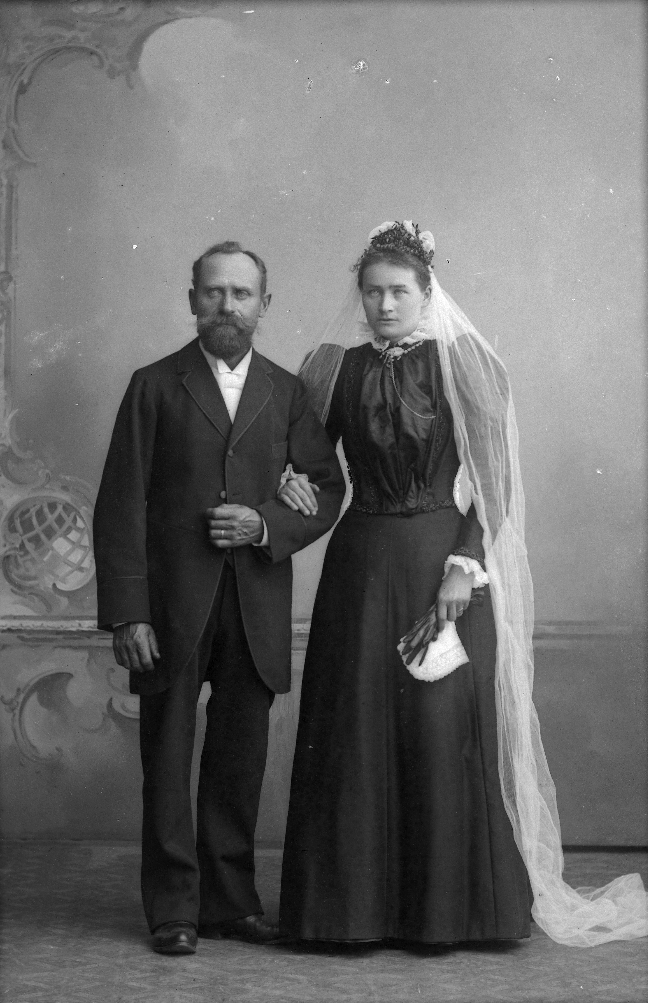 Beskrivning: Porträtt i helfigur av Carl Möller med fru.