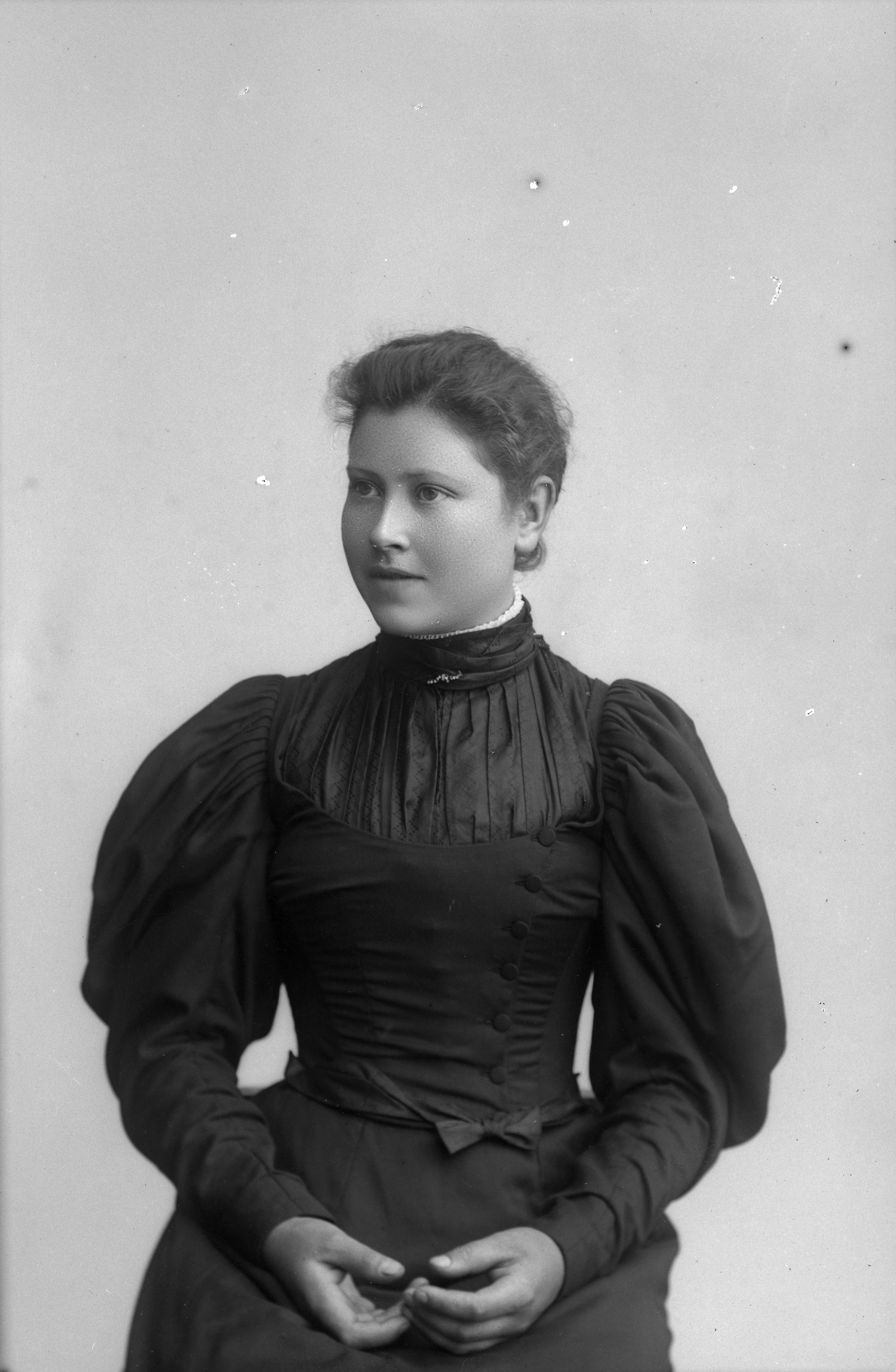 Beskrivning: Porträtt i halvfigur av Sofia Olsson.