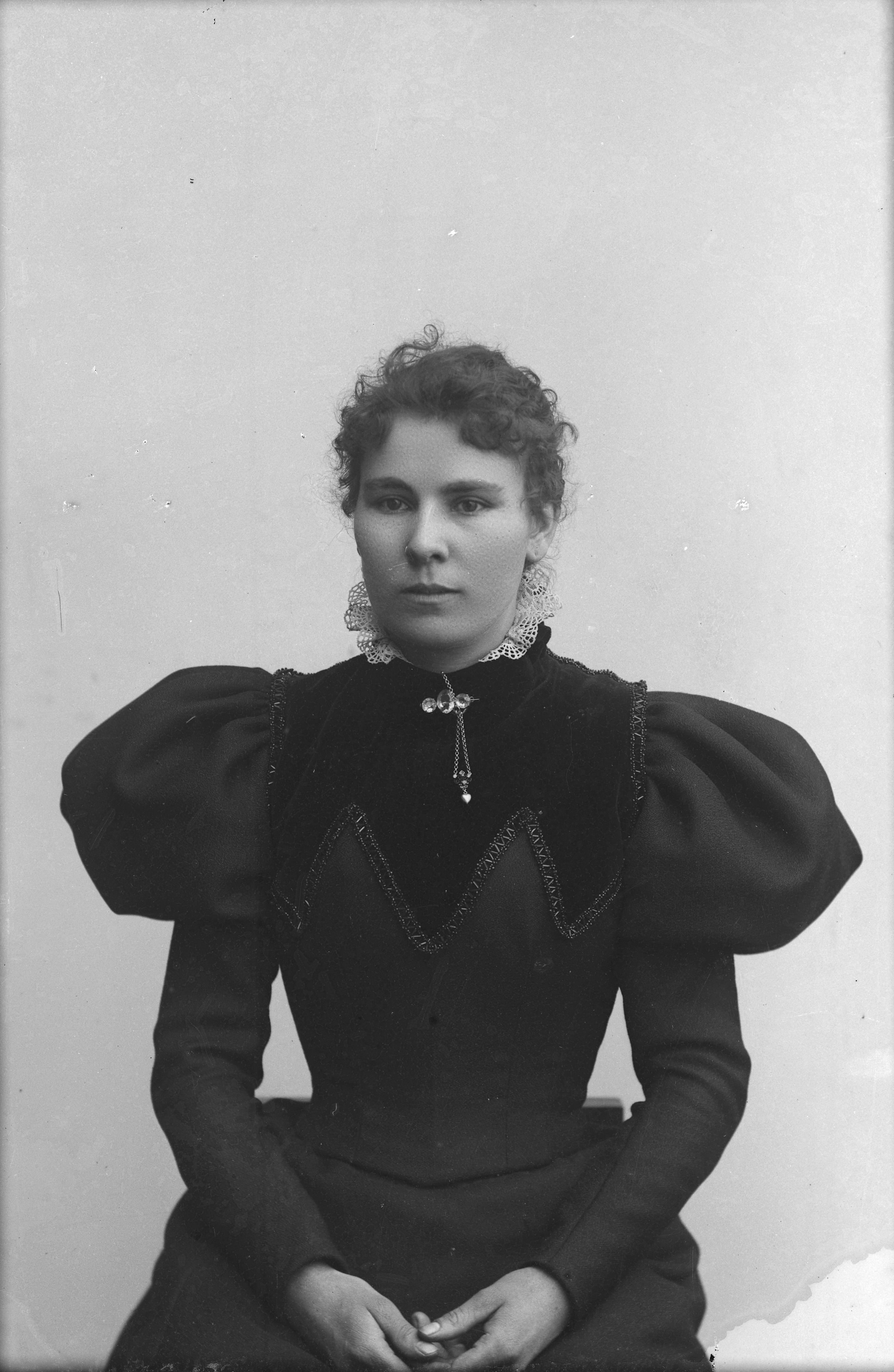 Beskrivning: Porträtt i halvfigur av Ida Månsson.