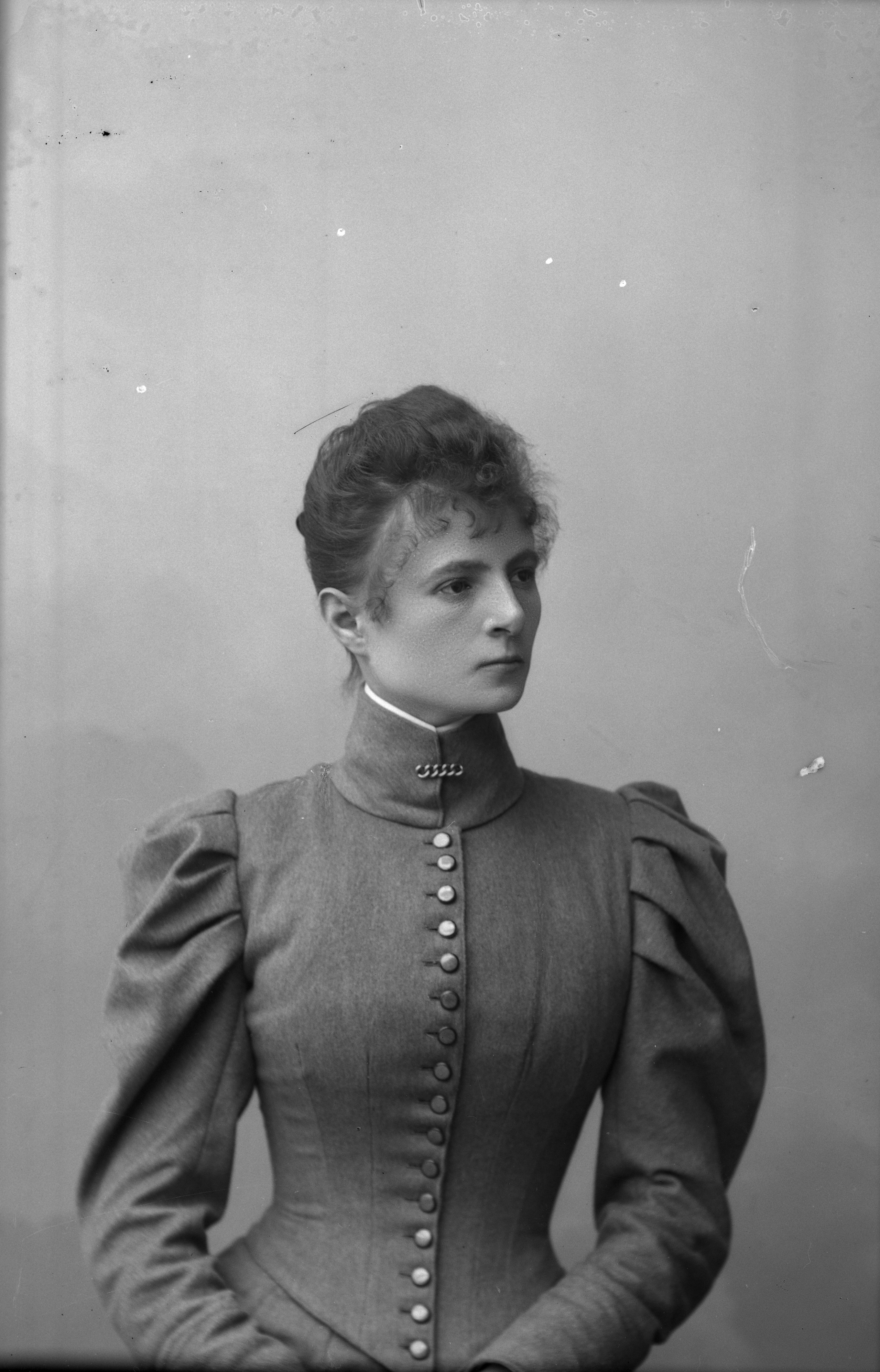 Beskrivning: Porträtt i halvfigur av Gerda Zickerman.