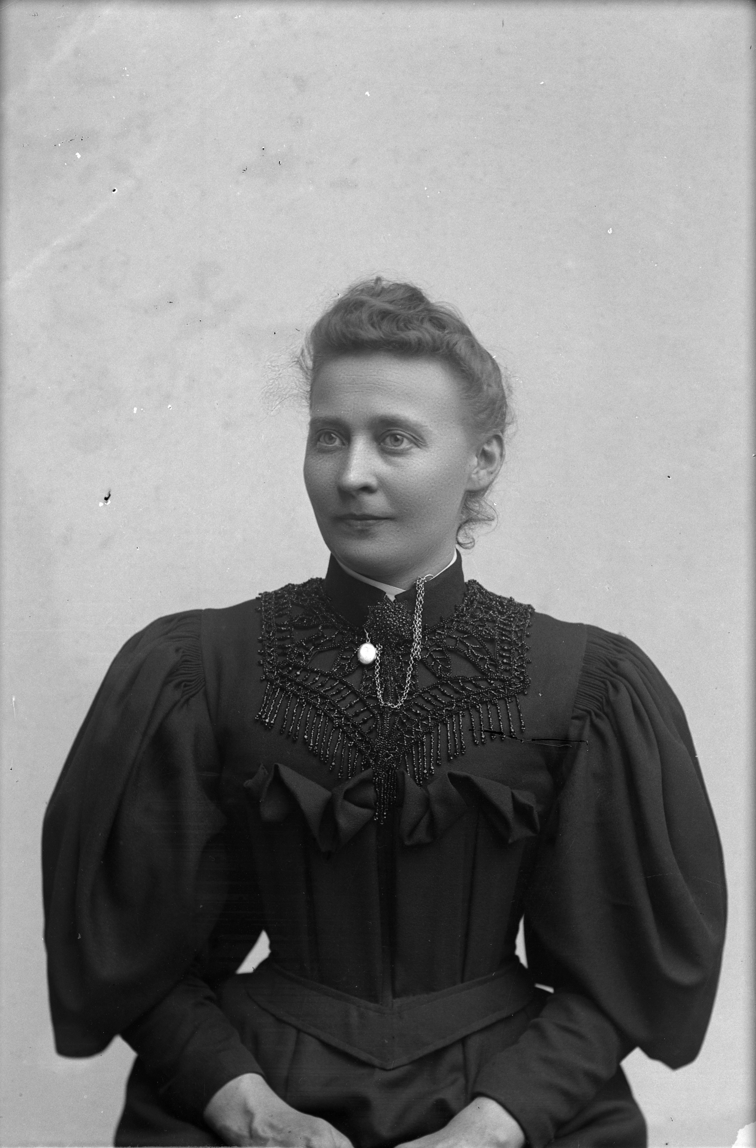 Beskrivning: Porträtt i halvfigur av Sofia Larson.