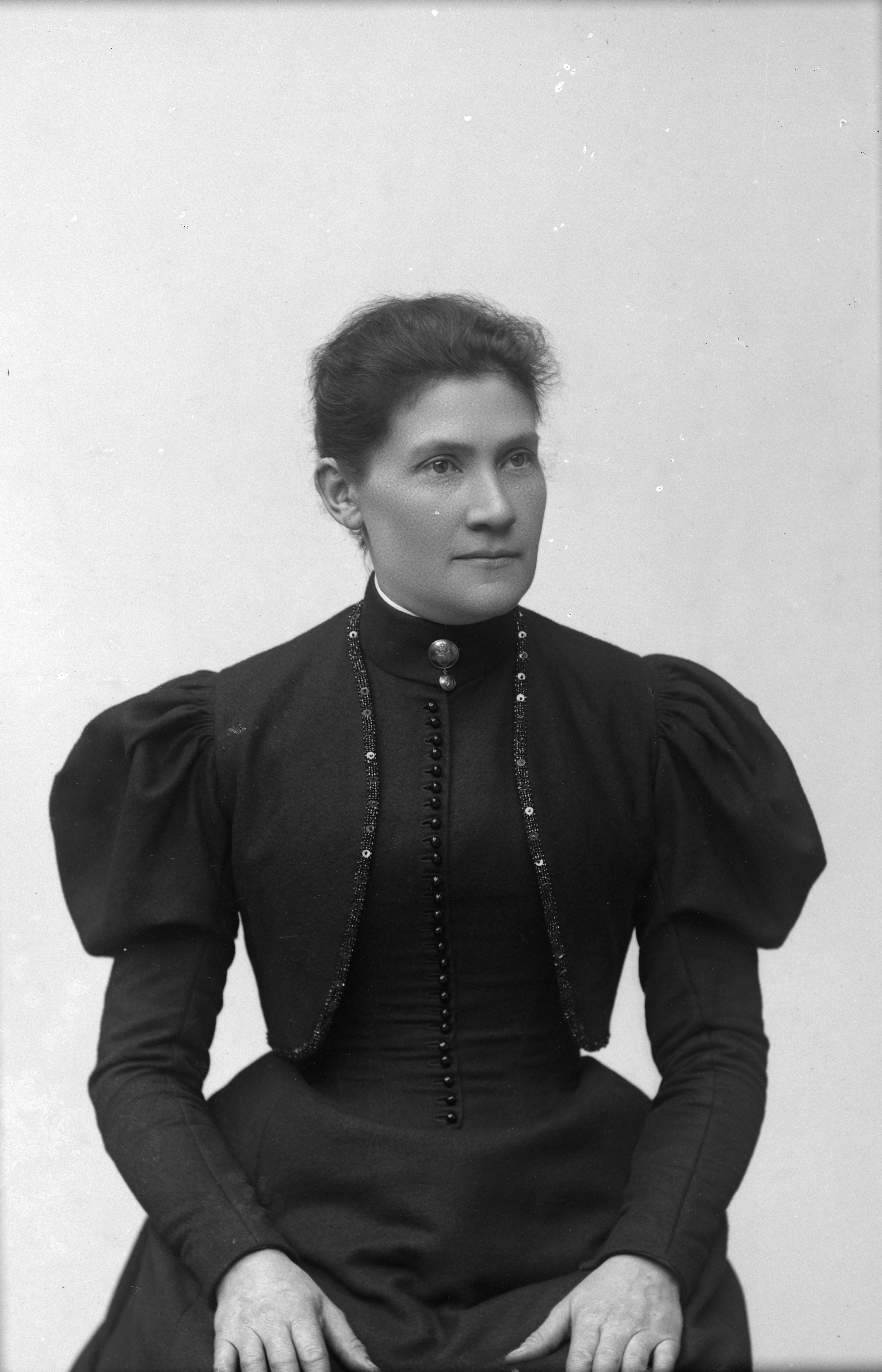 Beskrivning: Porträtt i halvfigur av Elna Grönberg.