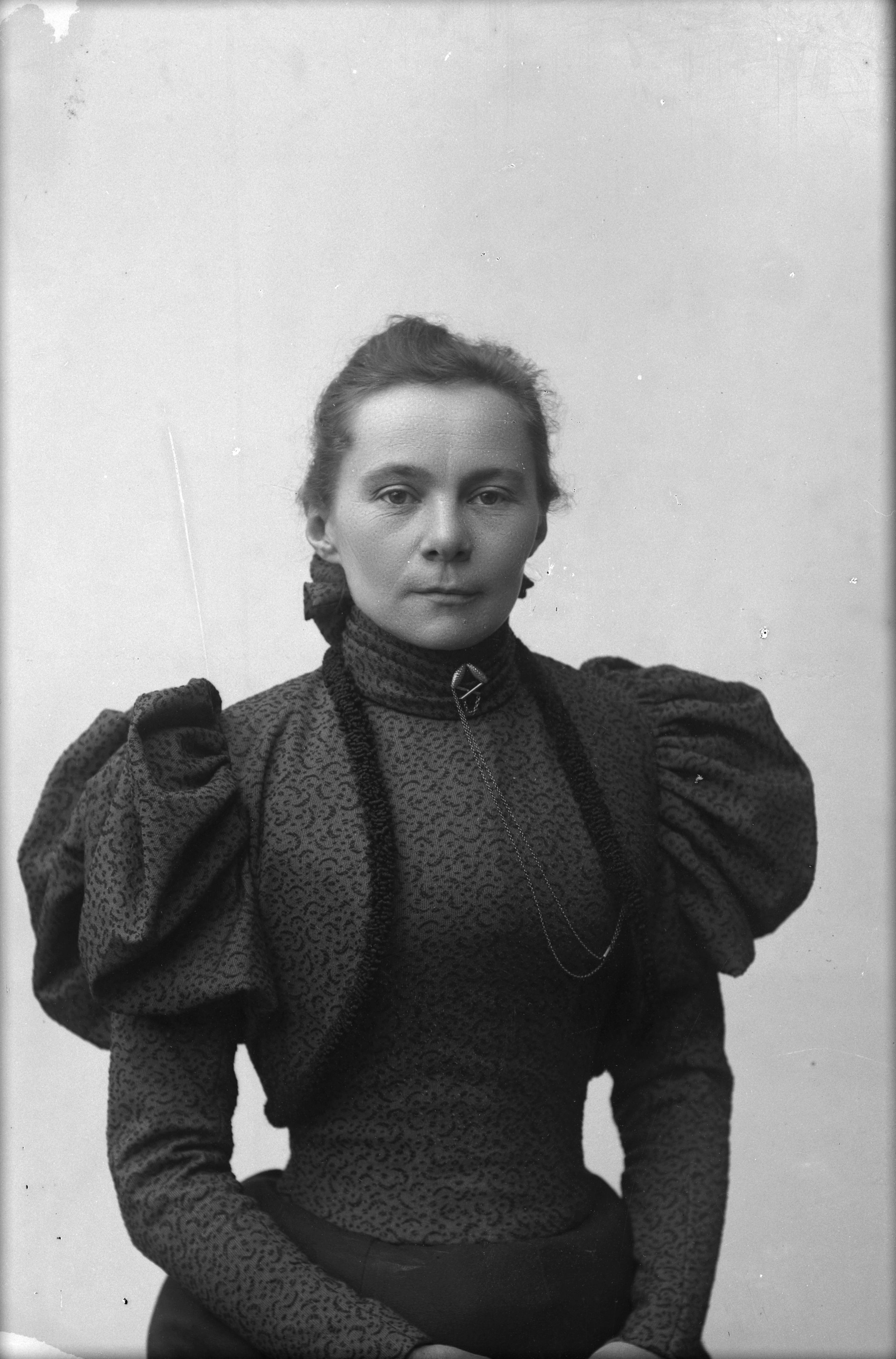Beskrivning: Porträtt i halvfigur av fru Assarsson.