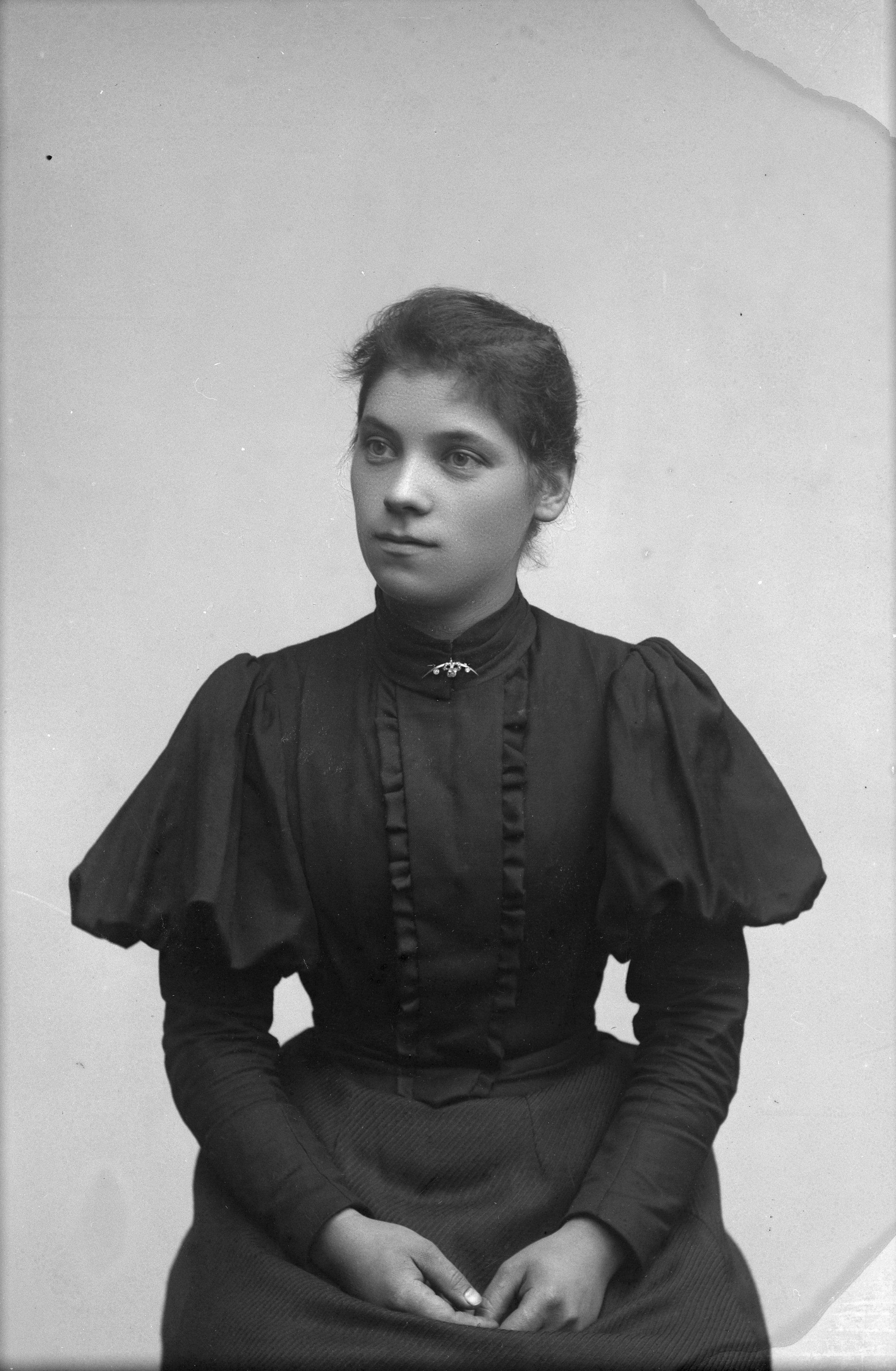 Beskrivning: Porträtt i halvfigur av Maria Larsson.