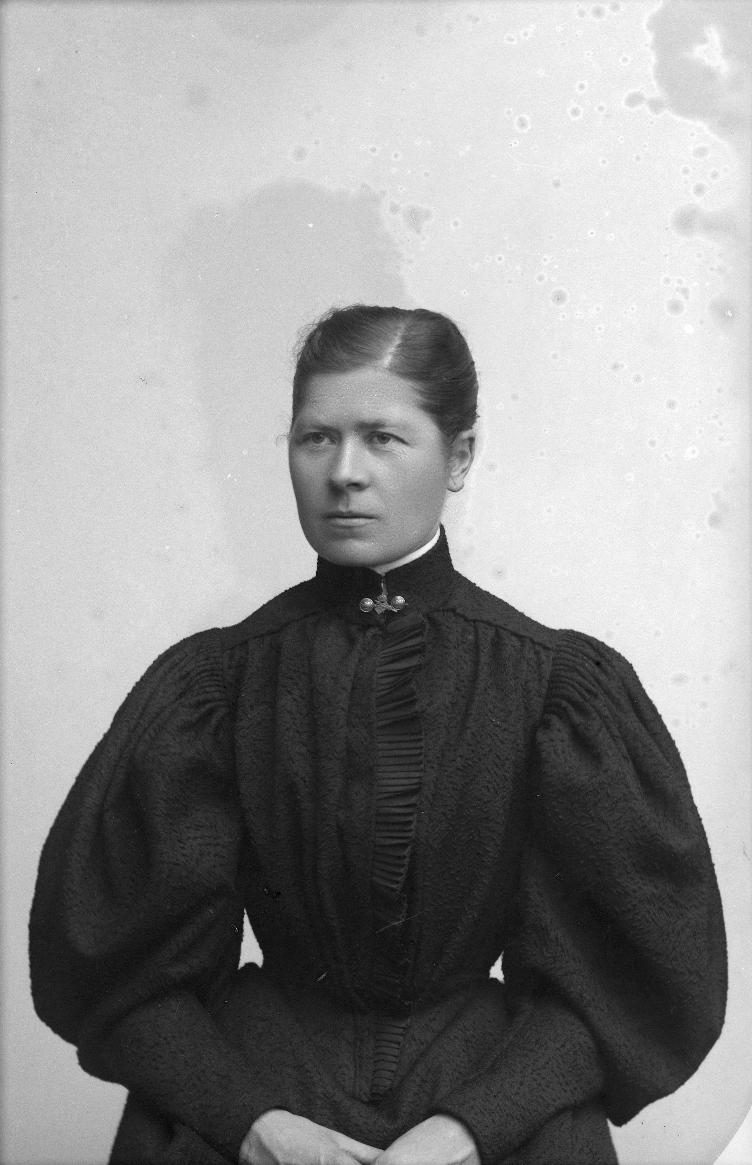 Beskrivning: Porträtt i halvfigur av fru Dahl.