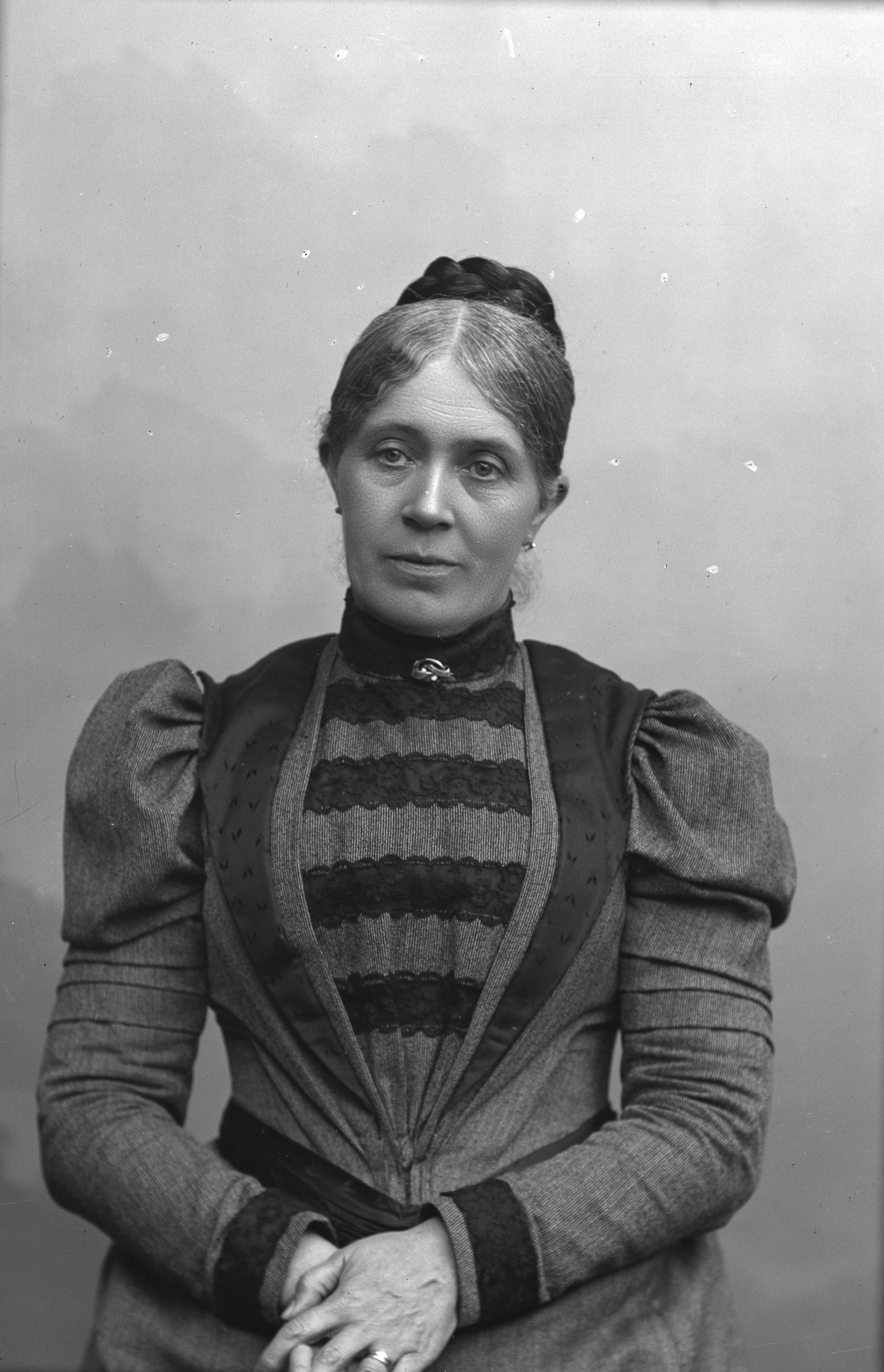 Beskrivning: Porträtt i halvfigur av fru Ehle.