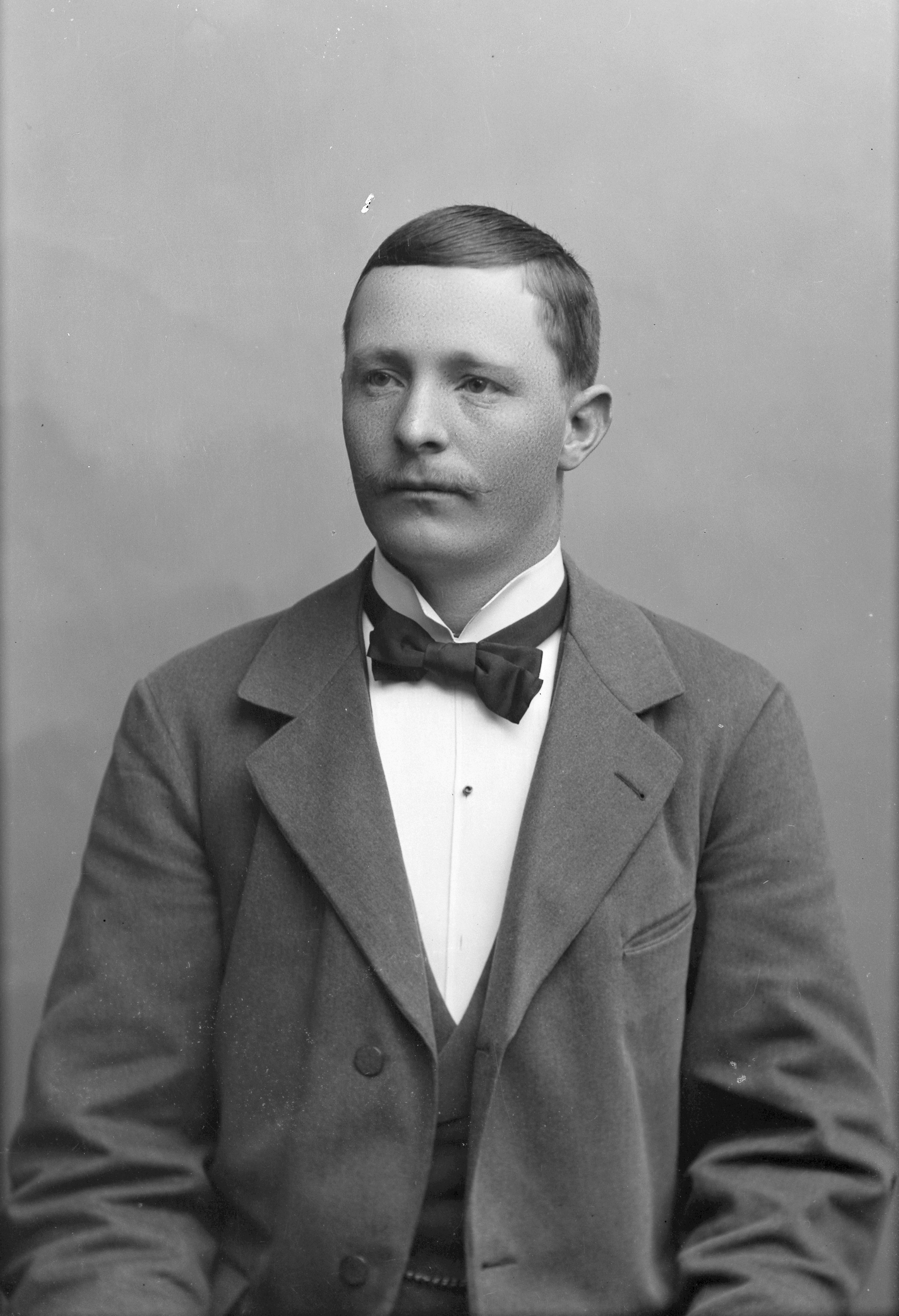 Beskrivning: Porträtt i halvfigur av oidentifierad man.