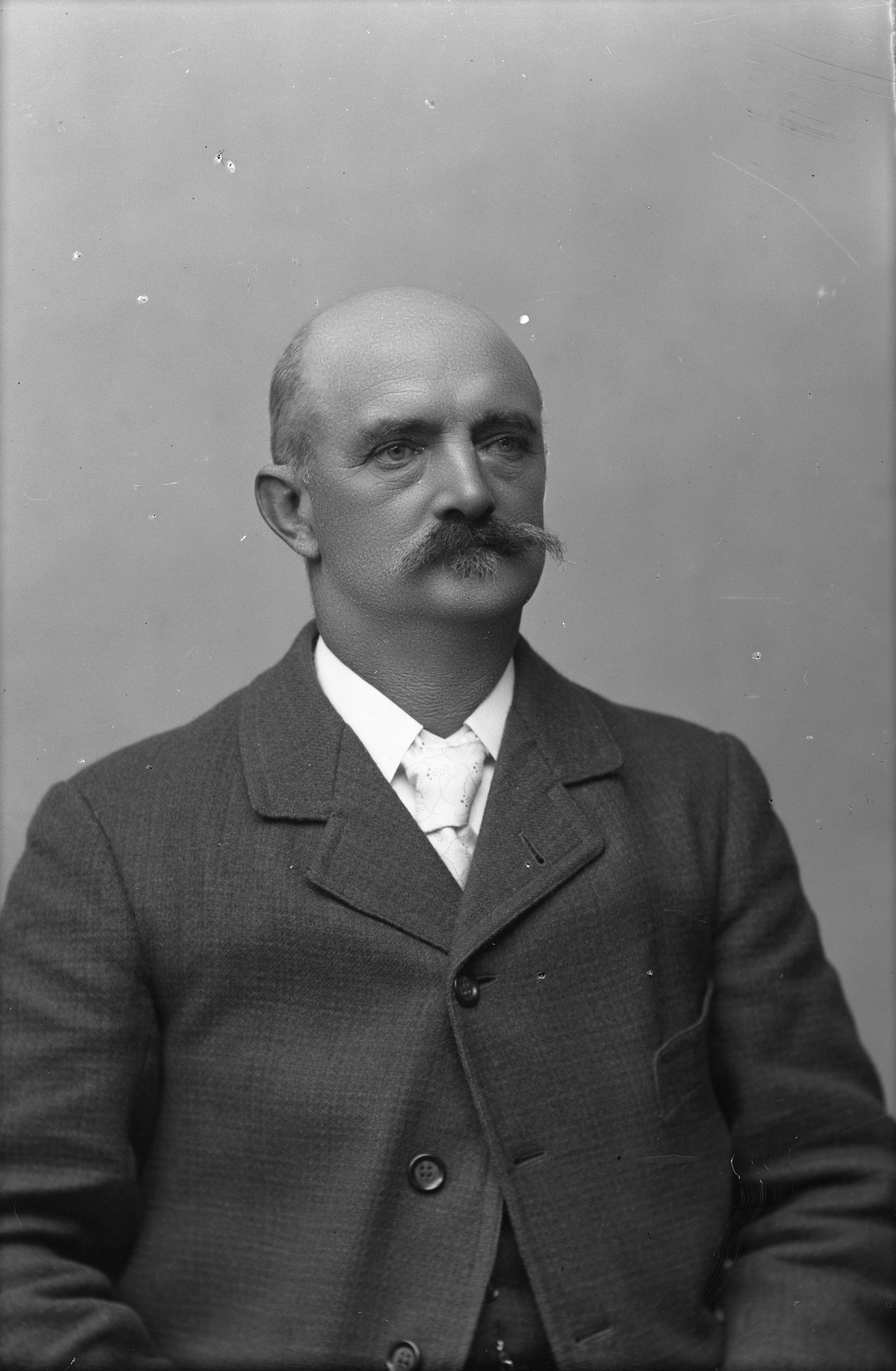 Beskrivning: Porträtt i halvfigur av N. O. Ruslad.