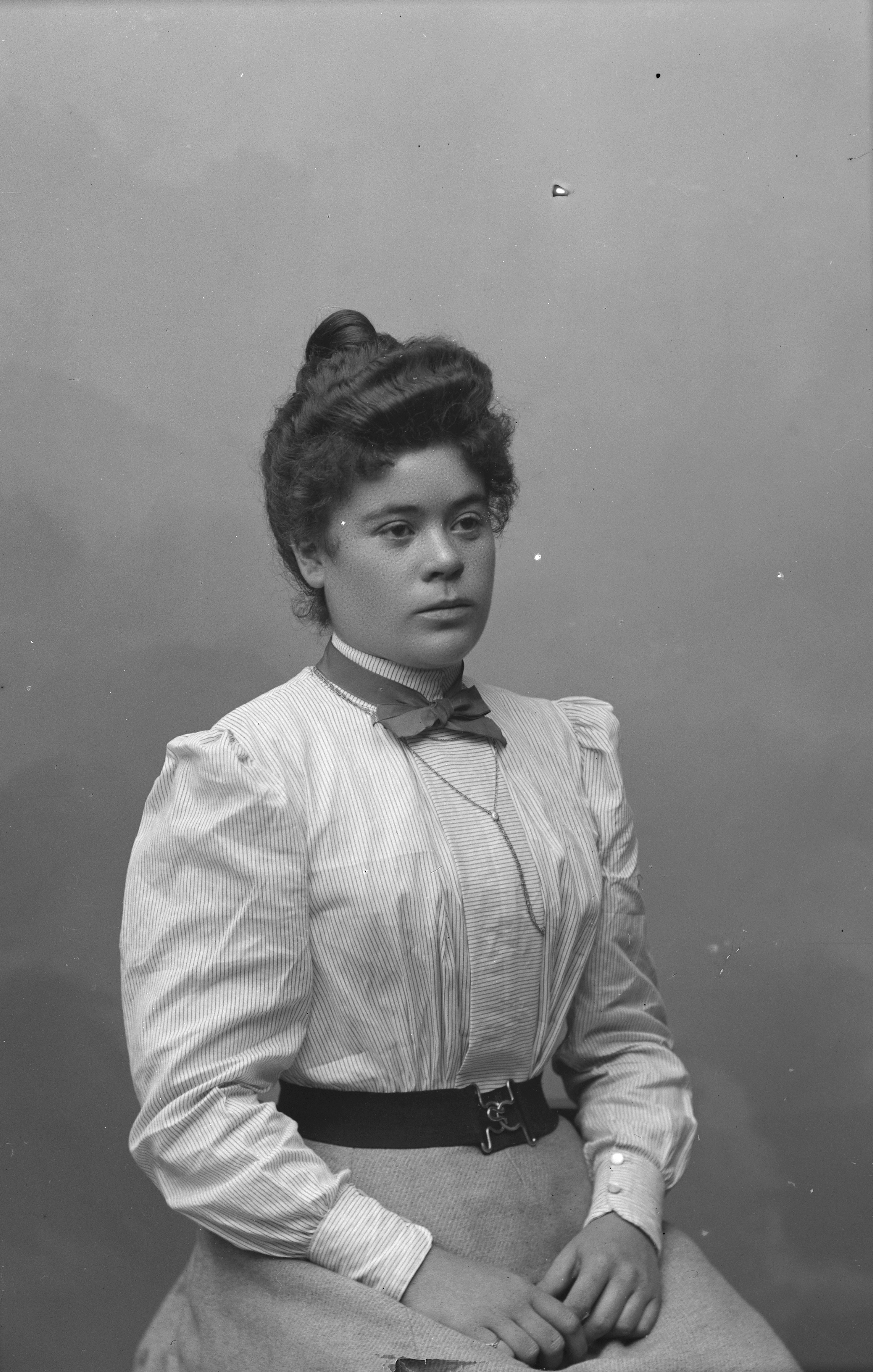 Beskrivning: Porträtt i halvfigur av Johanna Holmström.