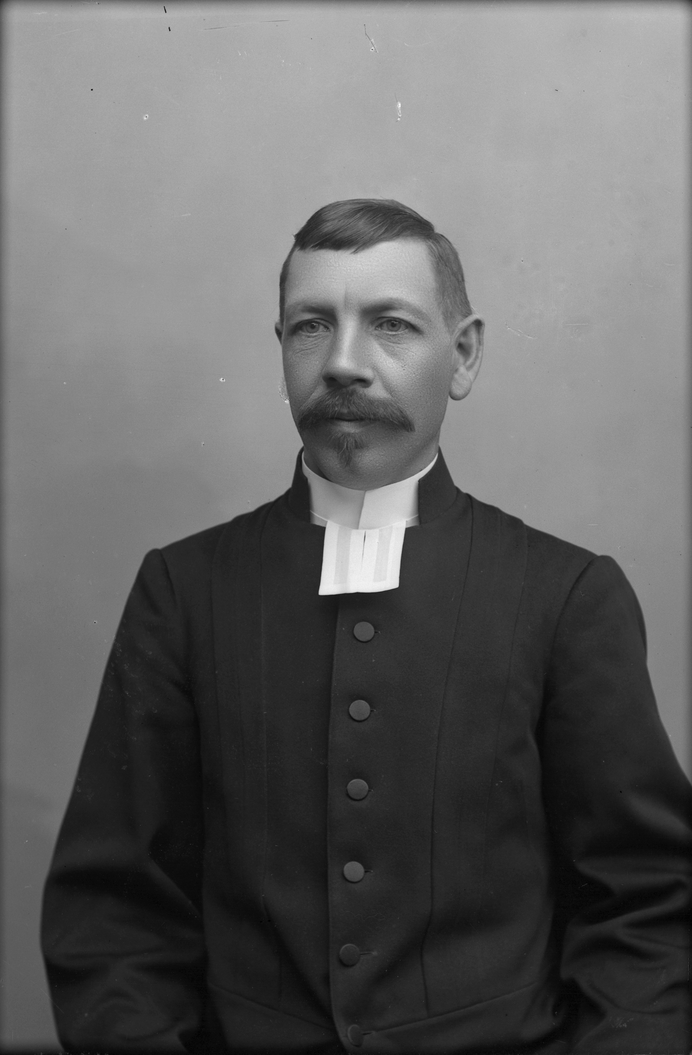 Porträtt i halvfigur av herr Hegerman, iklädd prästkrage.