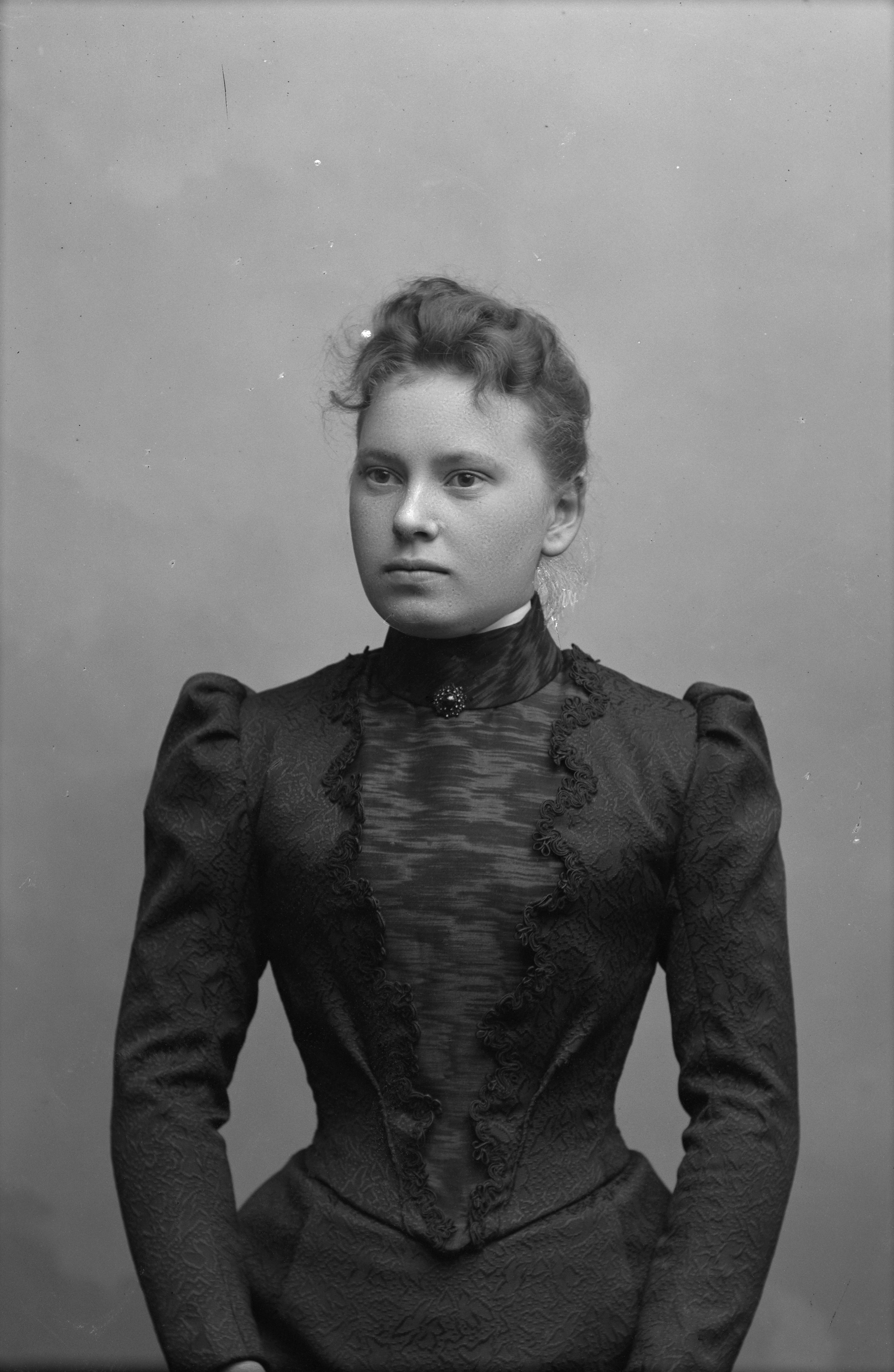 Beskrivning: Porträtt i halvfigur av Ellen Hellström.