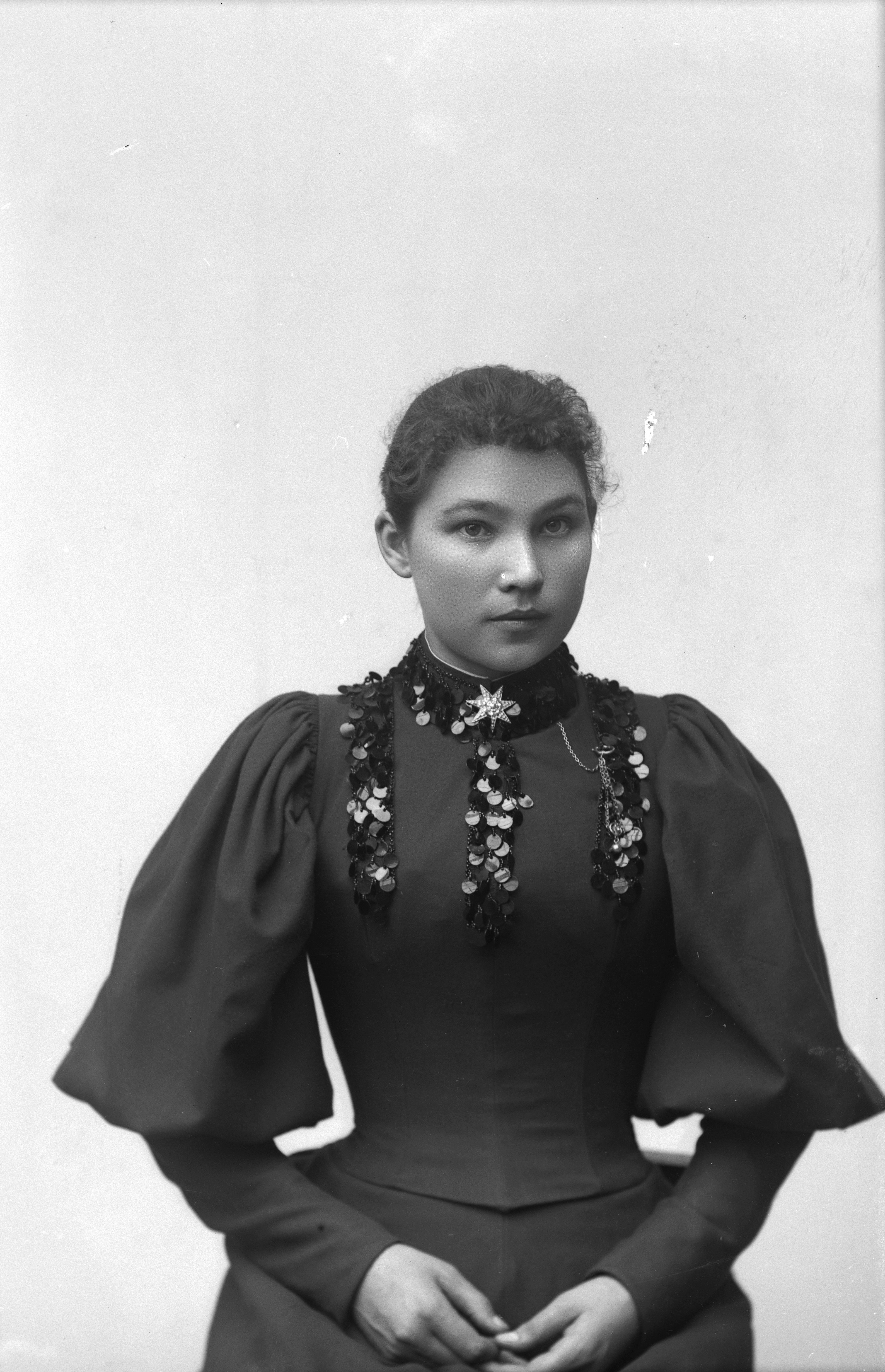 Beskrivning: Porträtt i halvfigur av Hilma Rosing.