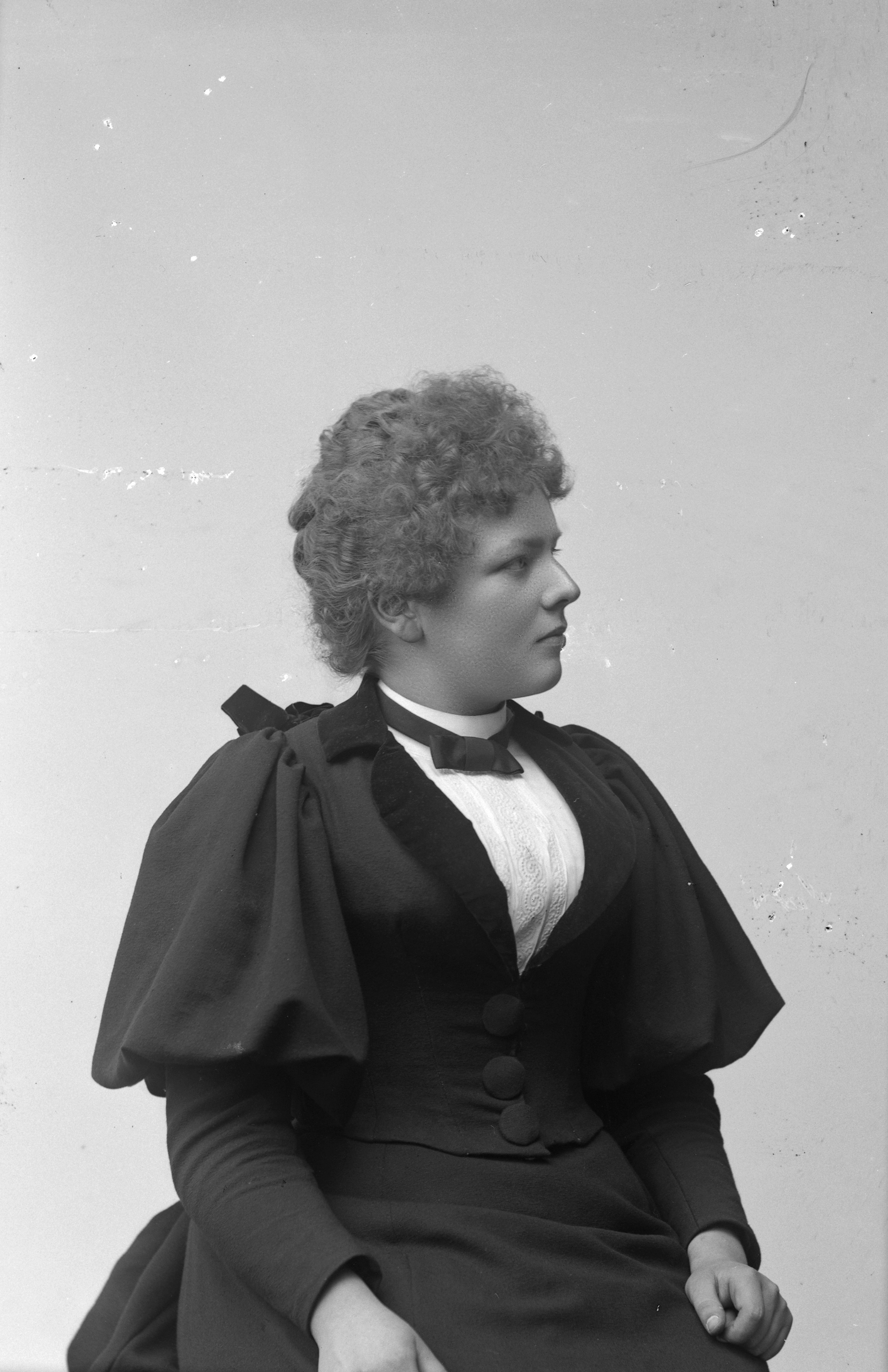 Beskrivning: Porträtt i halvfigur av Ida Karlsson.