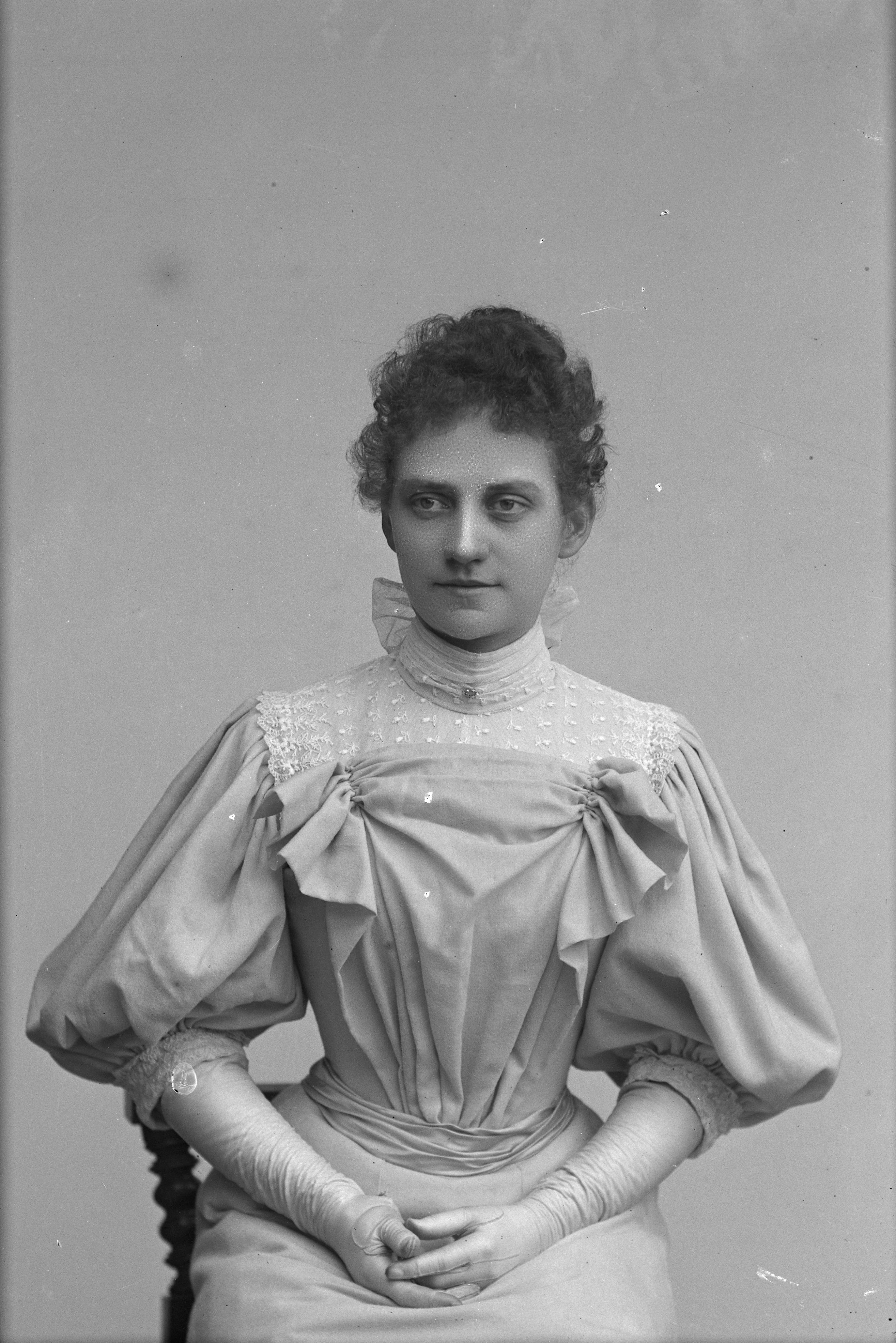 Beskrivning: Porträtt i halvfigur av Augusta Arvidsson.
