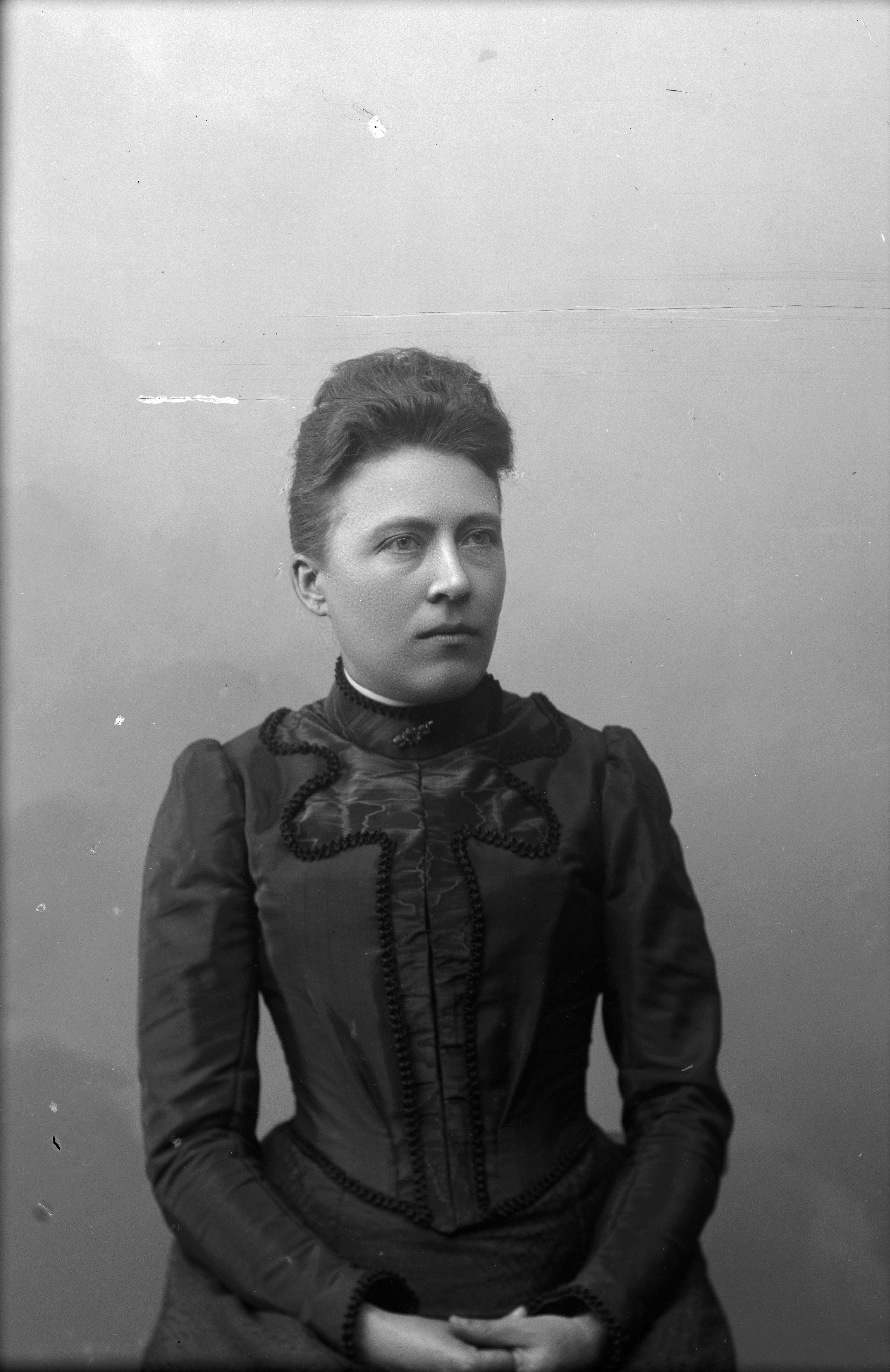 Beskrivning: Porträtt i halvfigur av Ida Olsson.