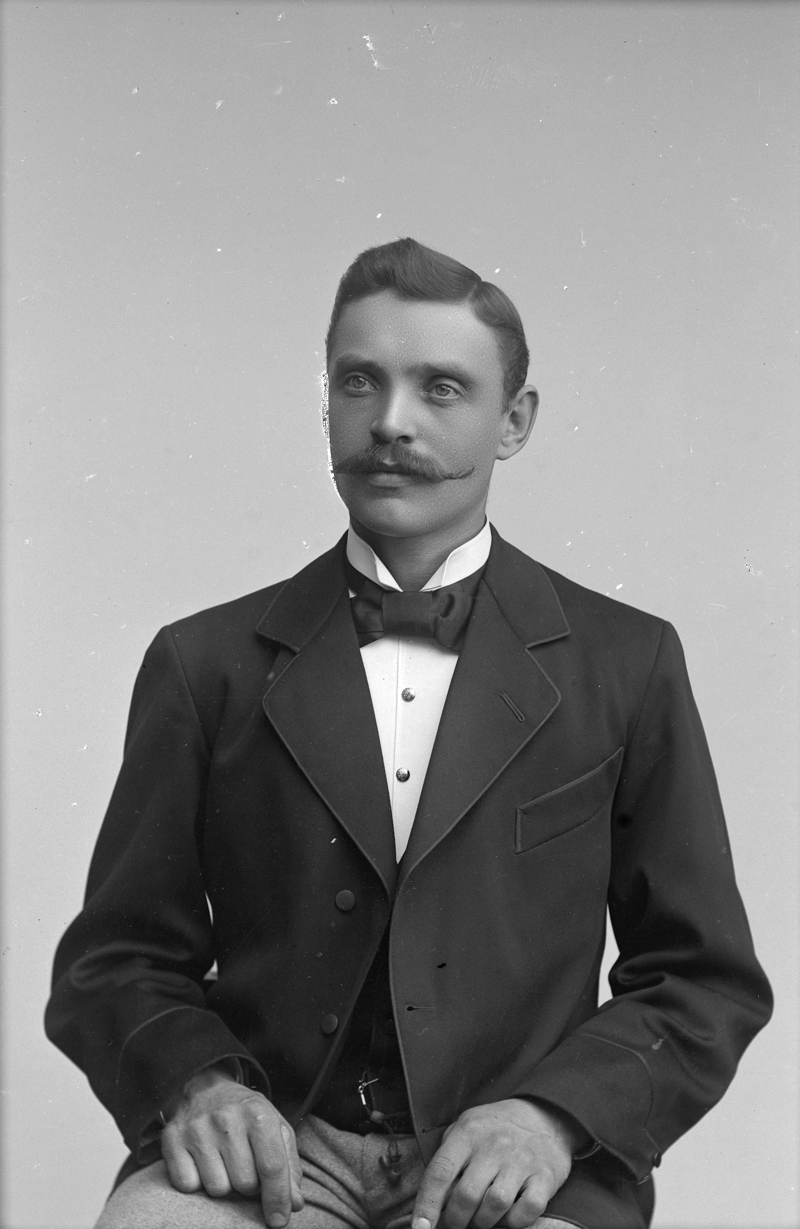 Beskrivning: Porträtt i halvfigur av E. Malm