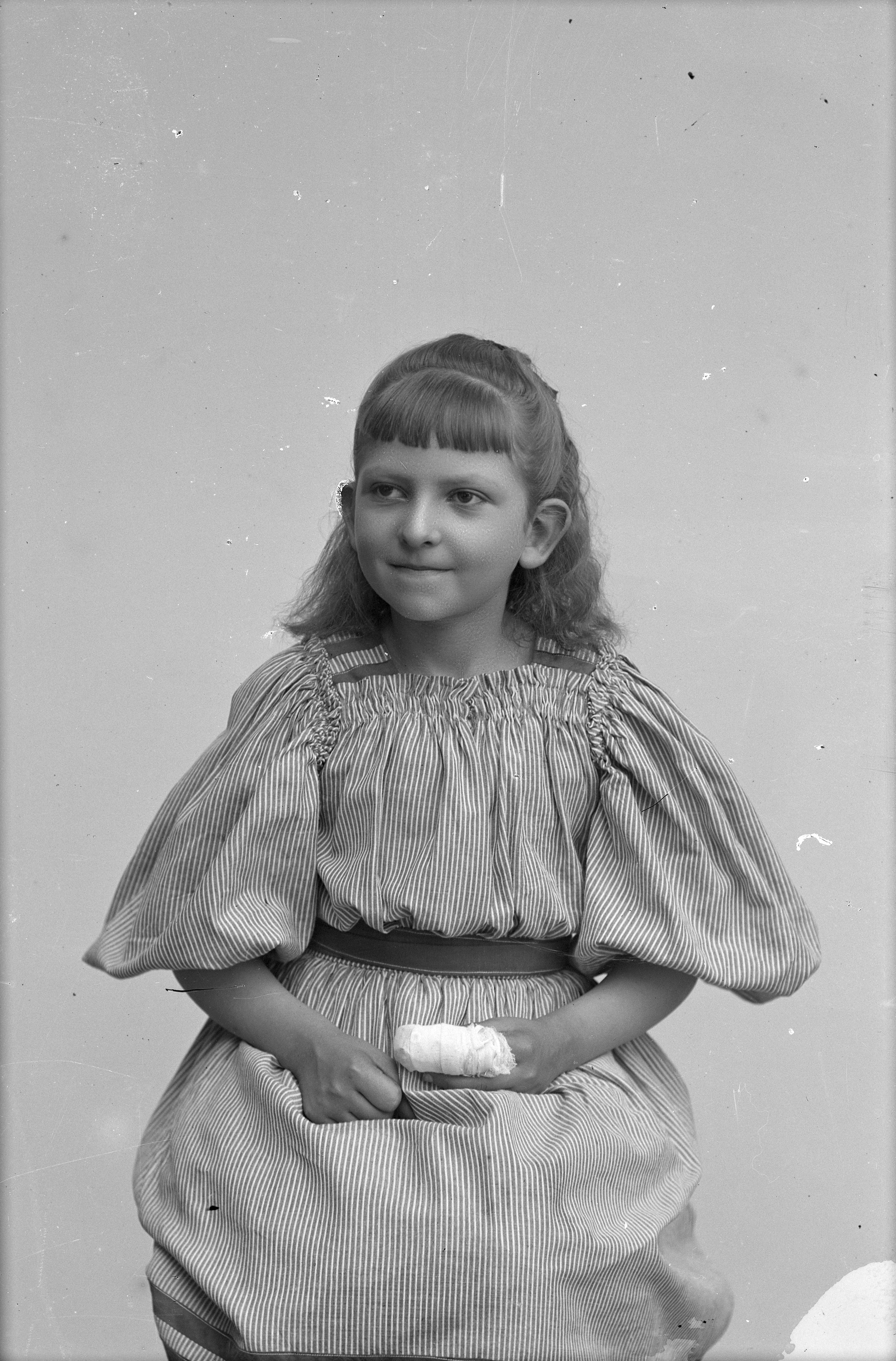 Beskrivning: Porträtt i helfigur av fröken Borg.