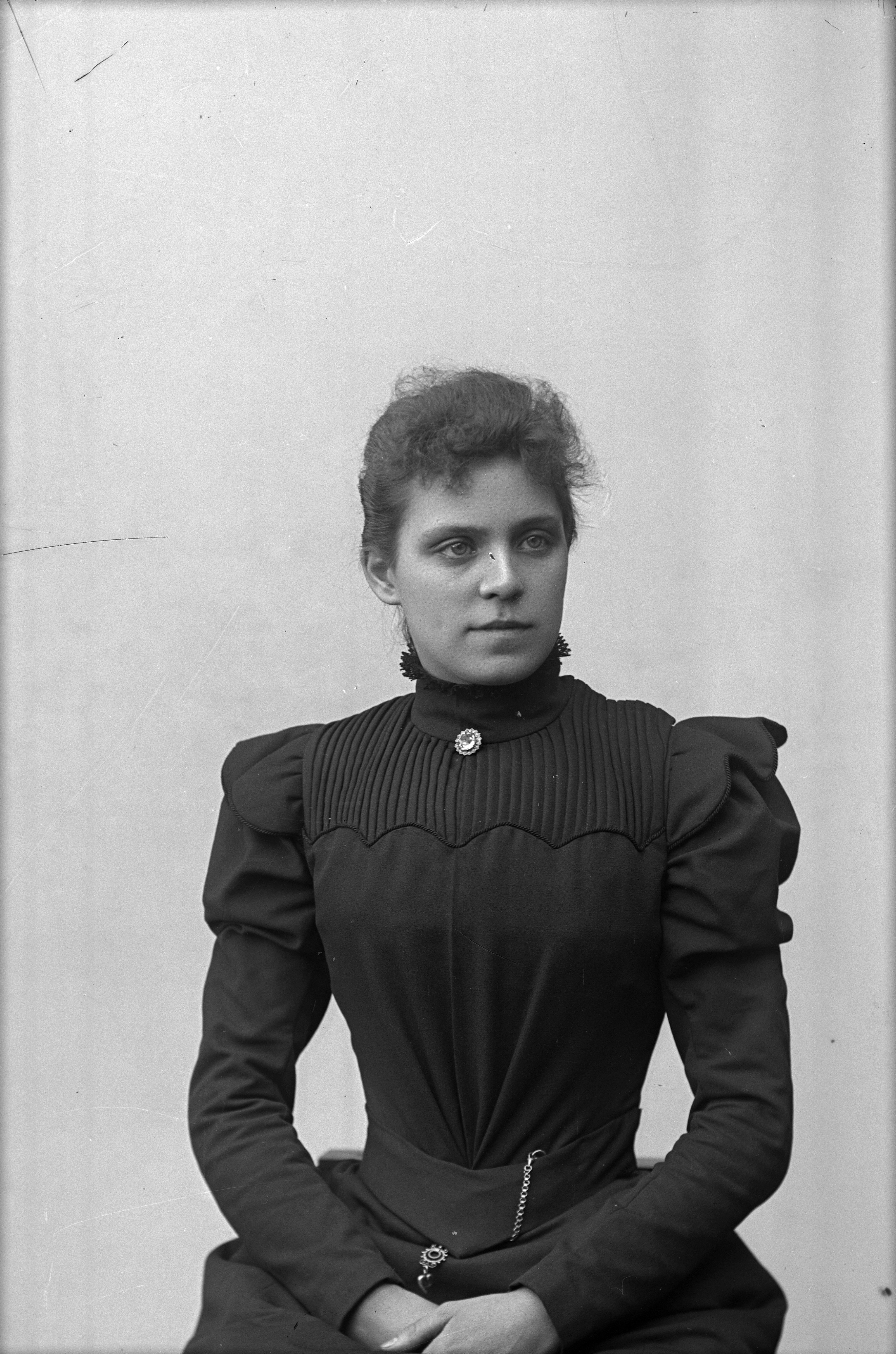 Beskrivning: Porträtt i halvfigur av Kerstin Larsson.