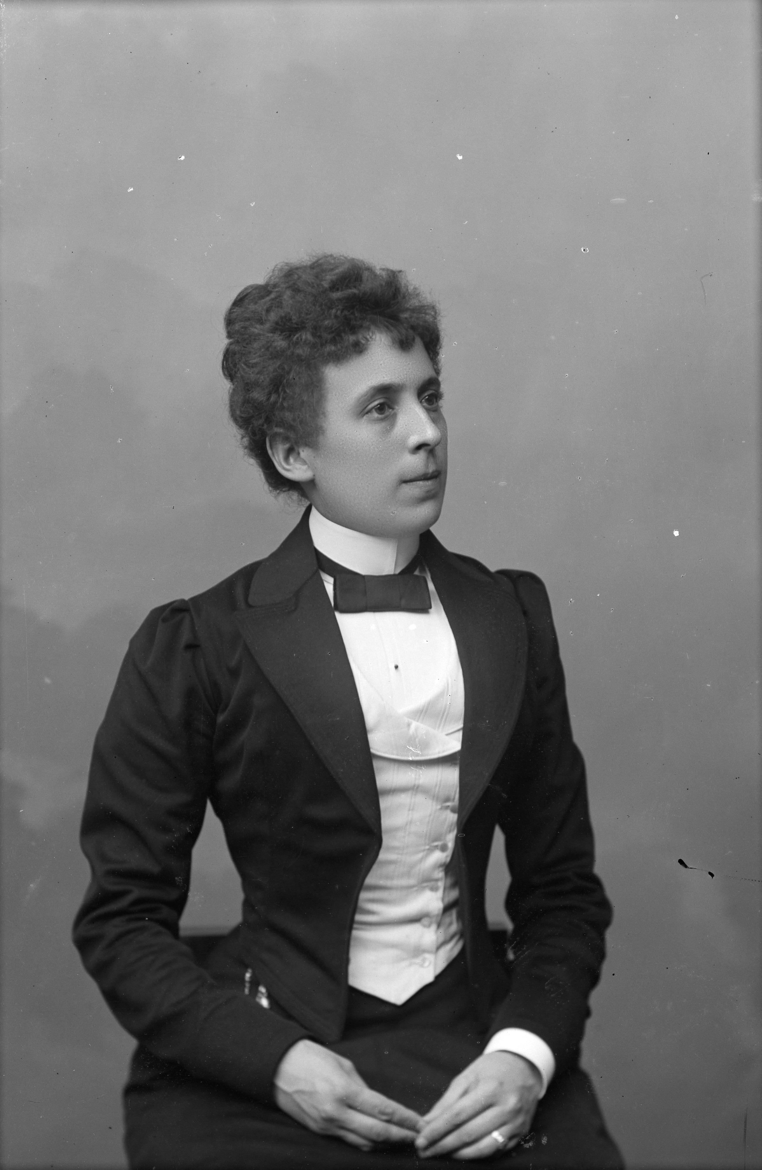 Beskrivning: Porträtt i halvfigur av Olga Åkerlund.
