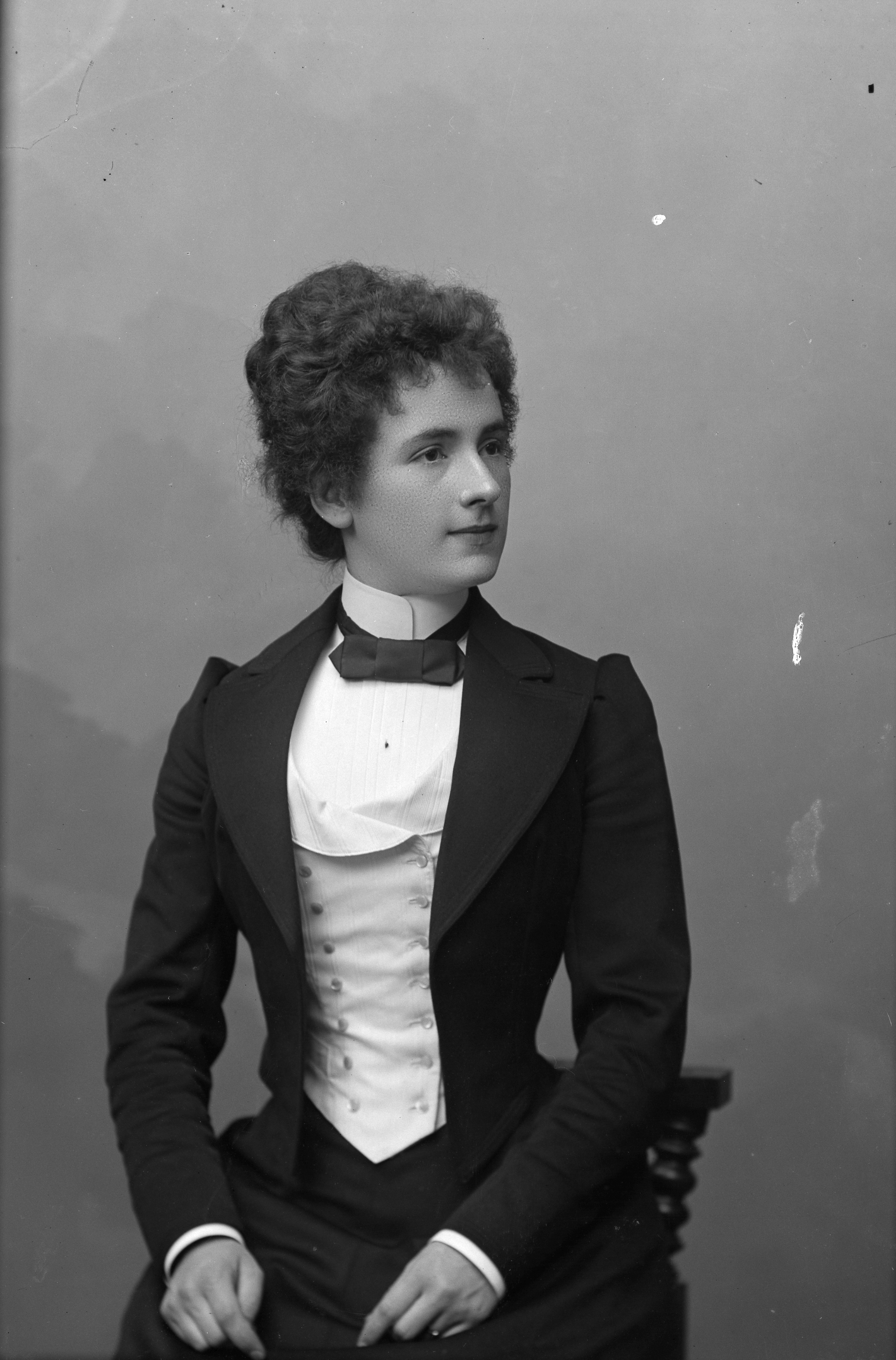 Beskrivning: Porträtt i halvfigur av fröken Åkerlund.