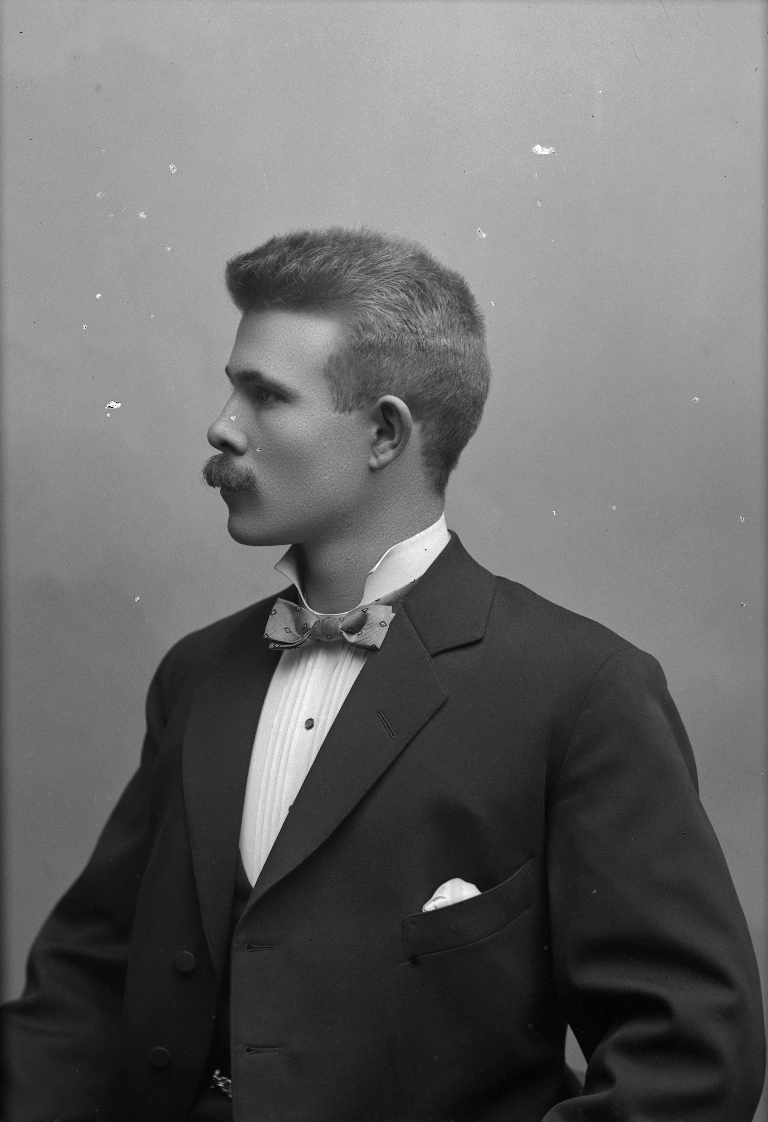 Porträtt i halvfigur, profil, av A. Jönsson.
