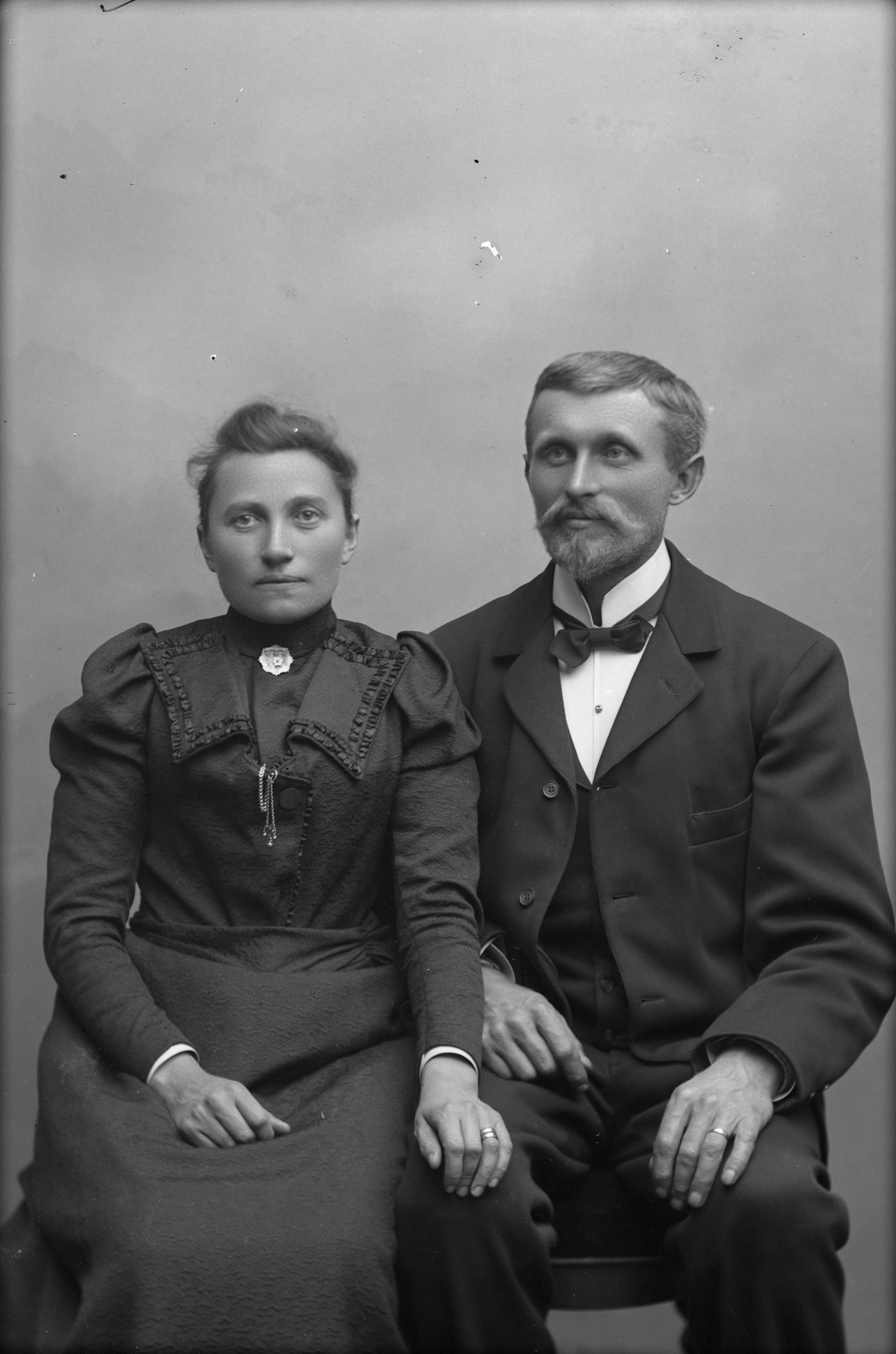 Beskrivning: Porträtt i helfigur av herr Mattsson med fru.