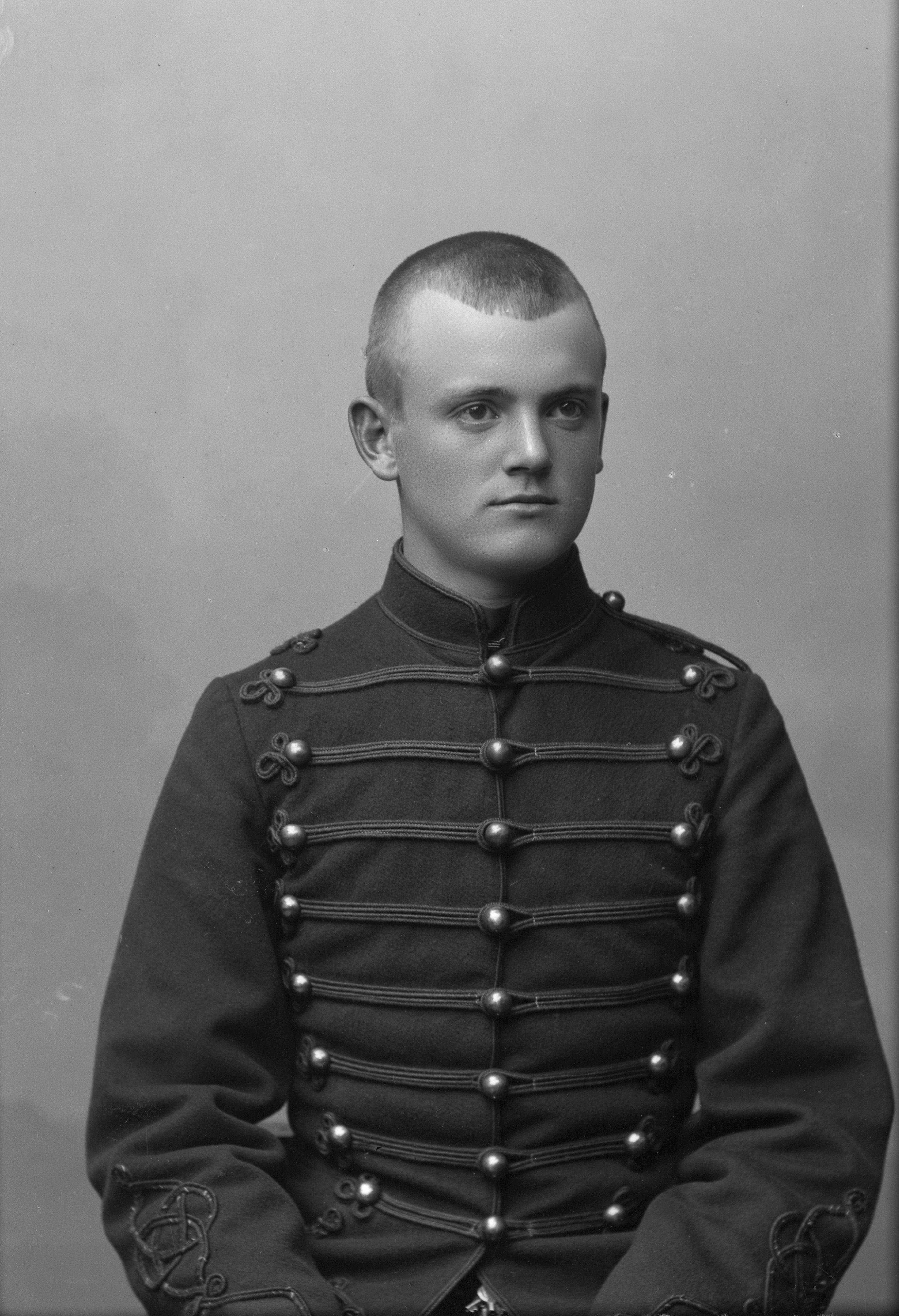 Porträtt i halvfigur av militären Grönquist, iklädd militäruniform.