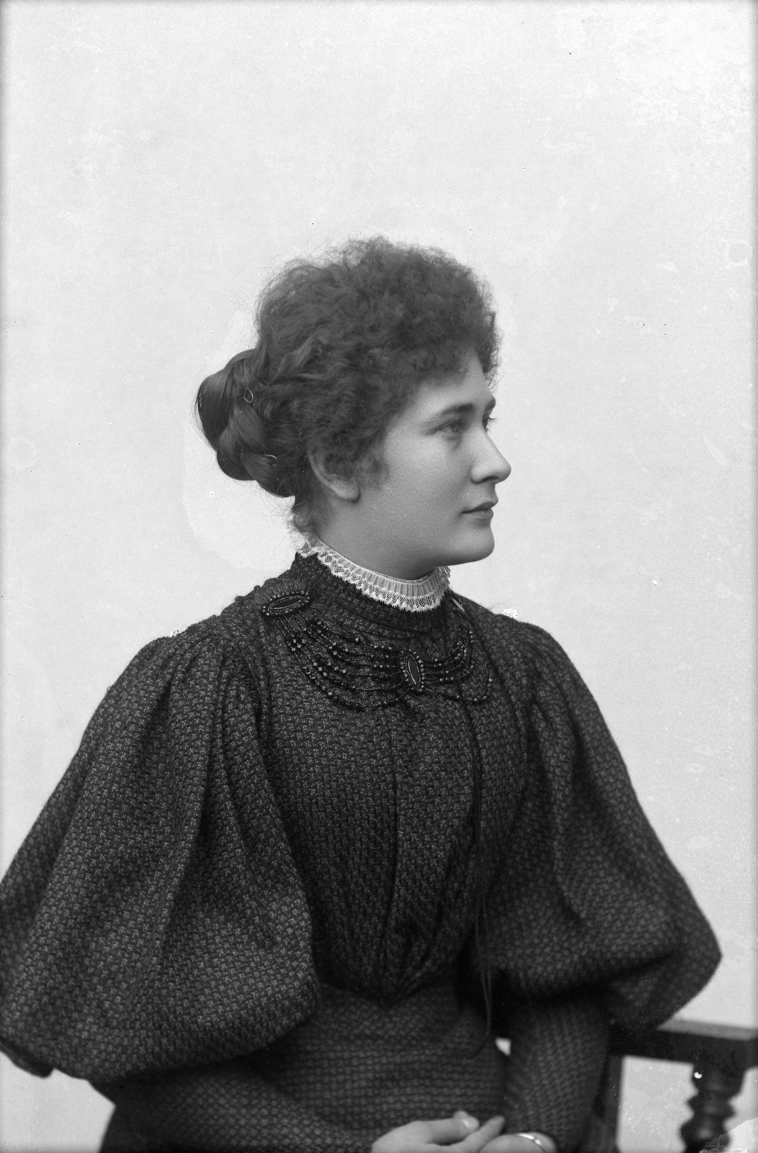 Beskrivning: Porträtt i halvfigur av Maja Dahlquist.