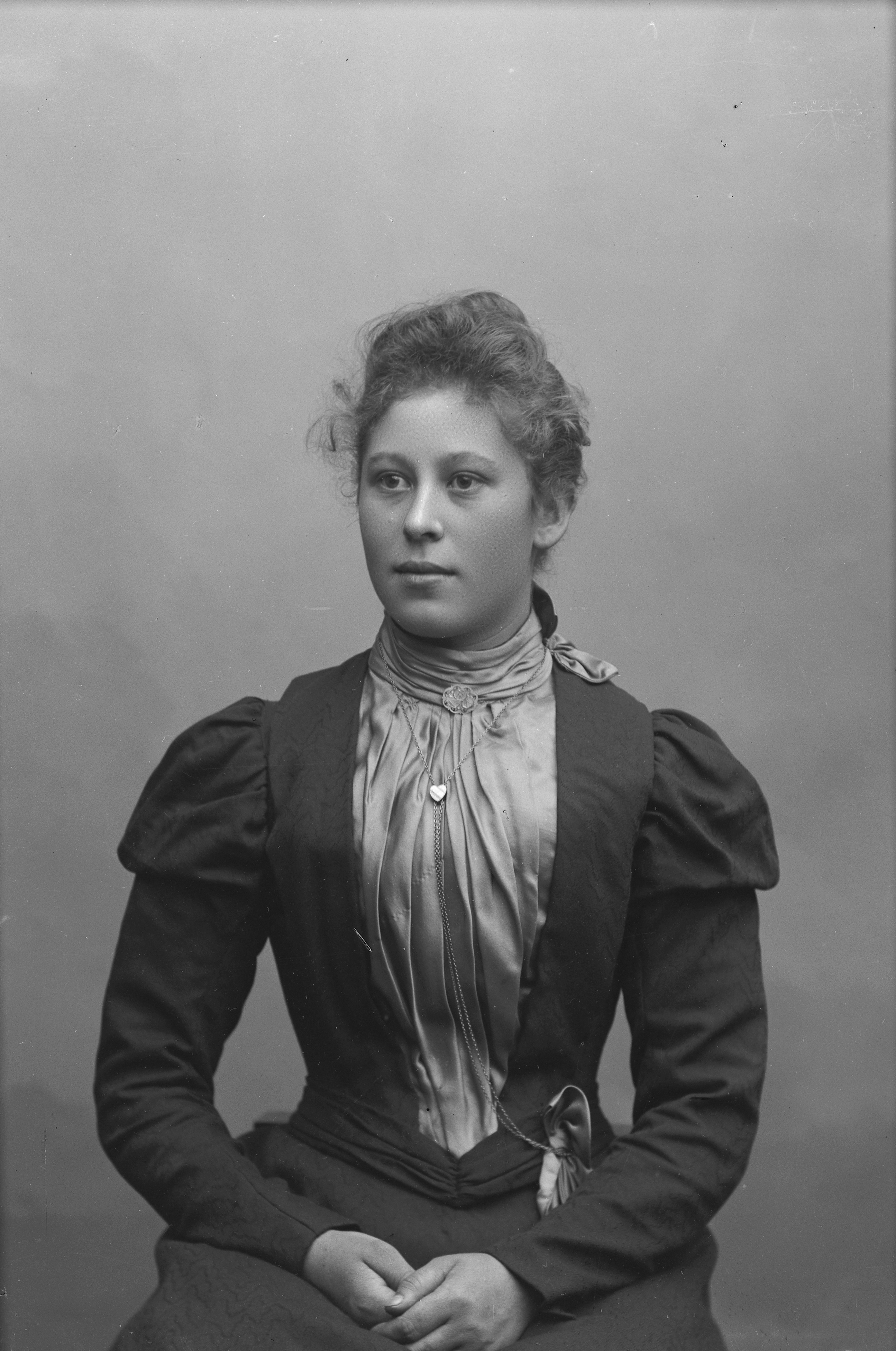 Beskrivning: Porträtt i halvfigur av Hilda Cristensson.