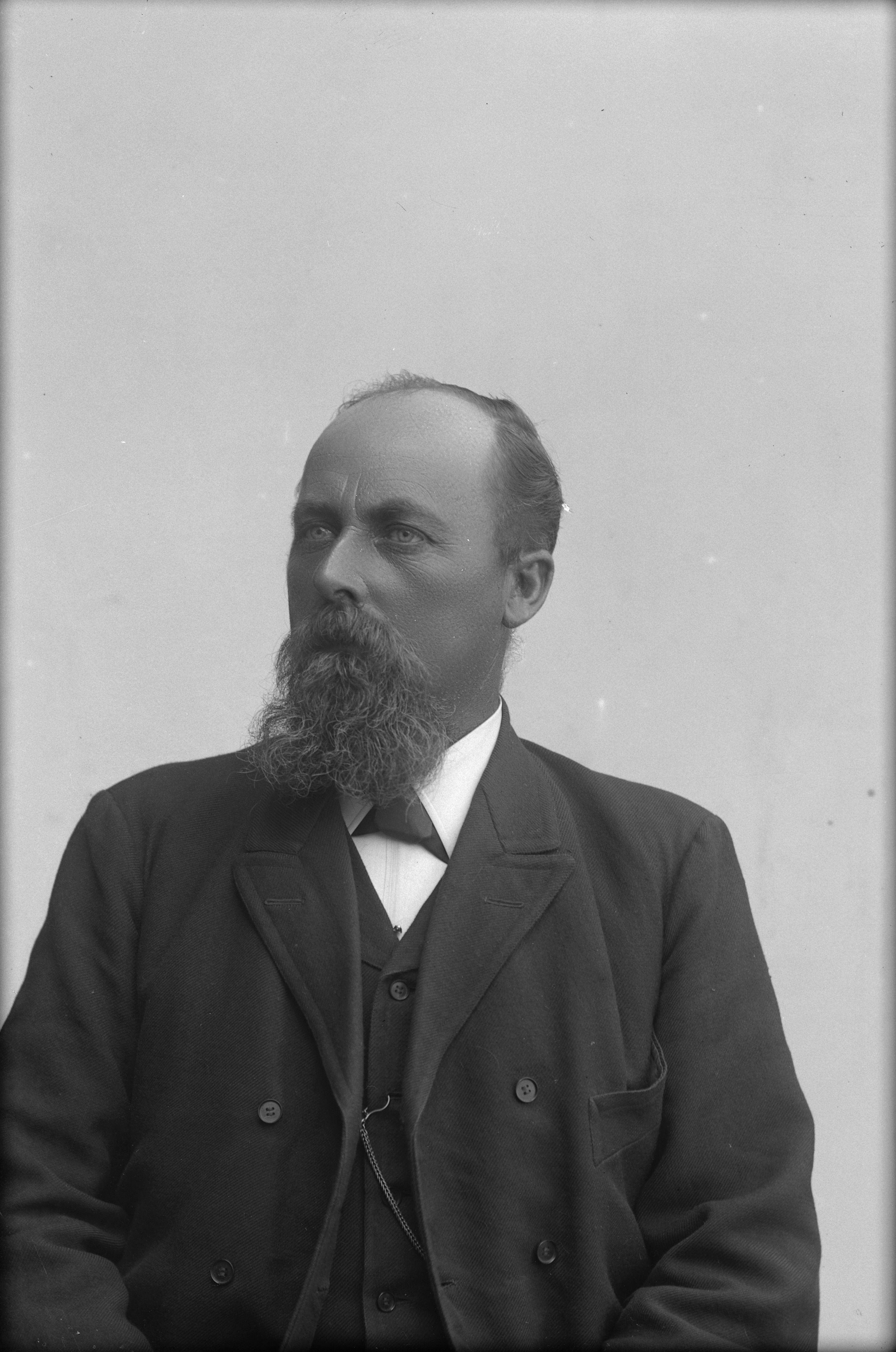 Beskrivning: Porträtt i halvfigur av lantbrukare A. Klein.