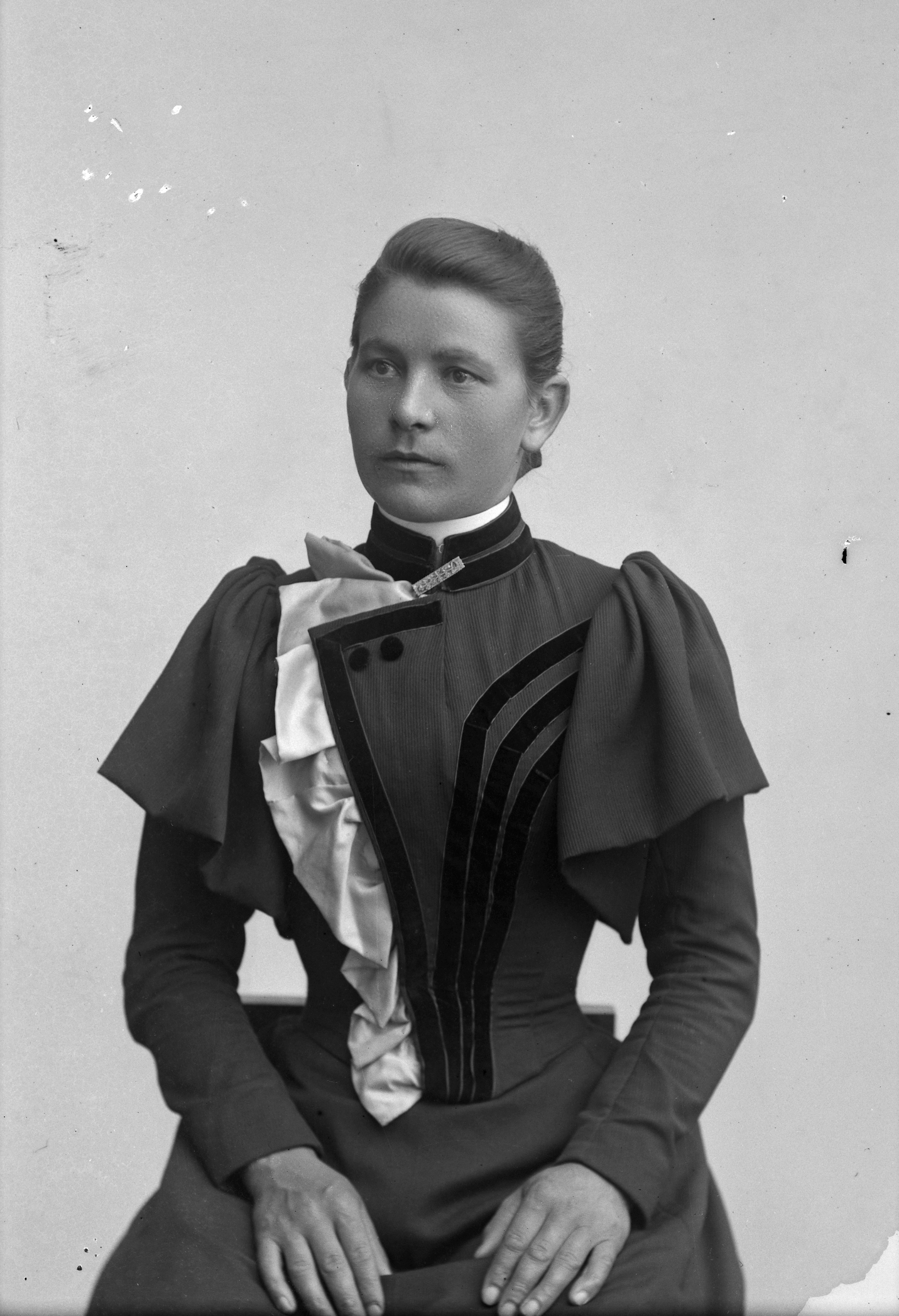 Beskrivning: Porträtt i halvfigur av Carolina Olsson.
