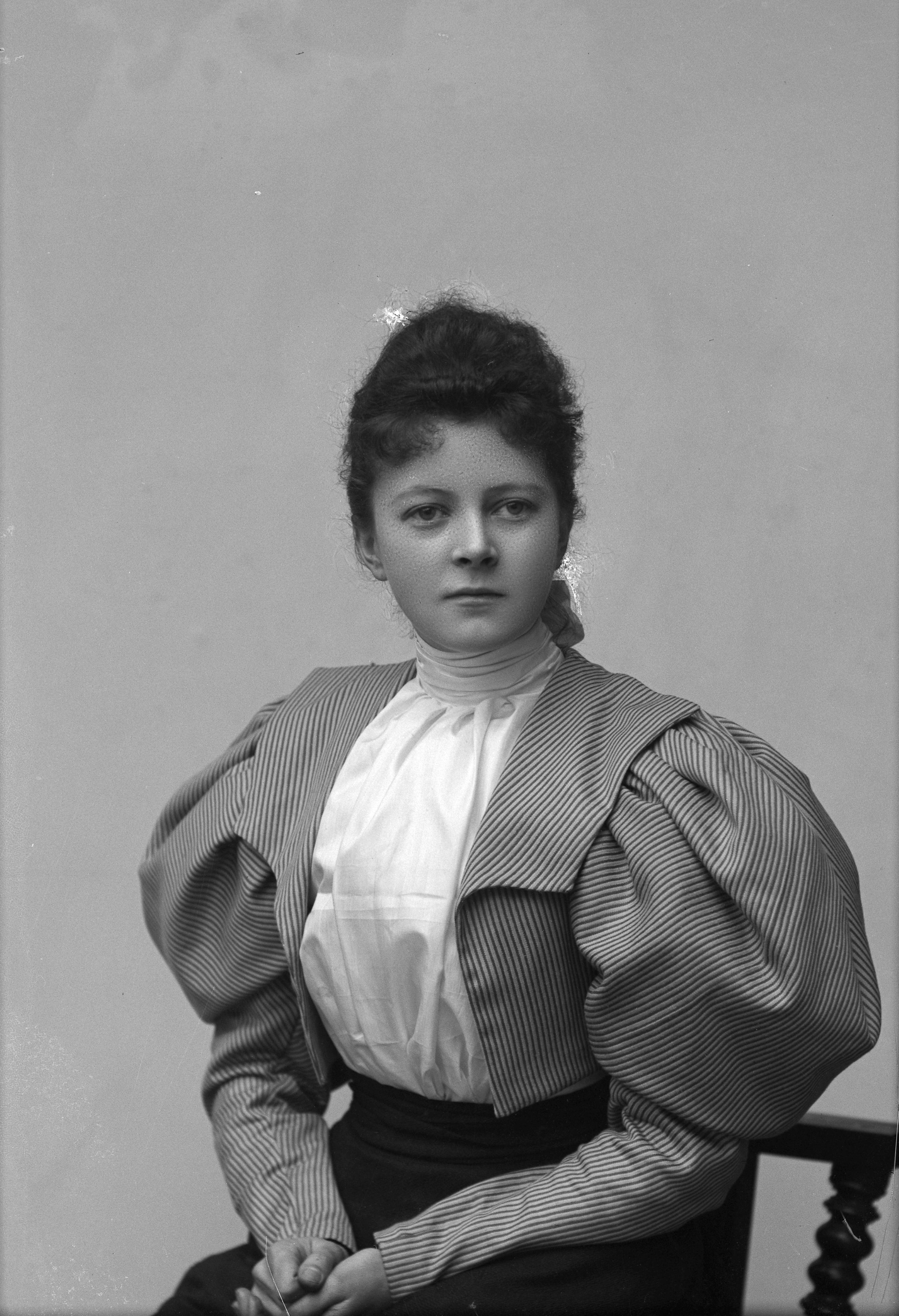Porträtt i halvfigur av Ellen Örtenblad, dotter till rådhuskanslist J. A. Östenblad (1838-) och Hulda Ulrika Knaust (1854-1935).