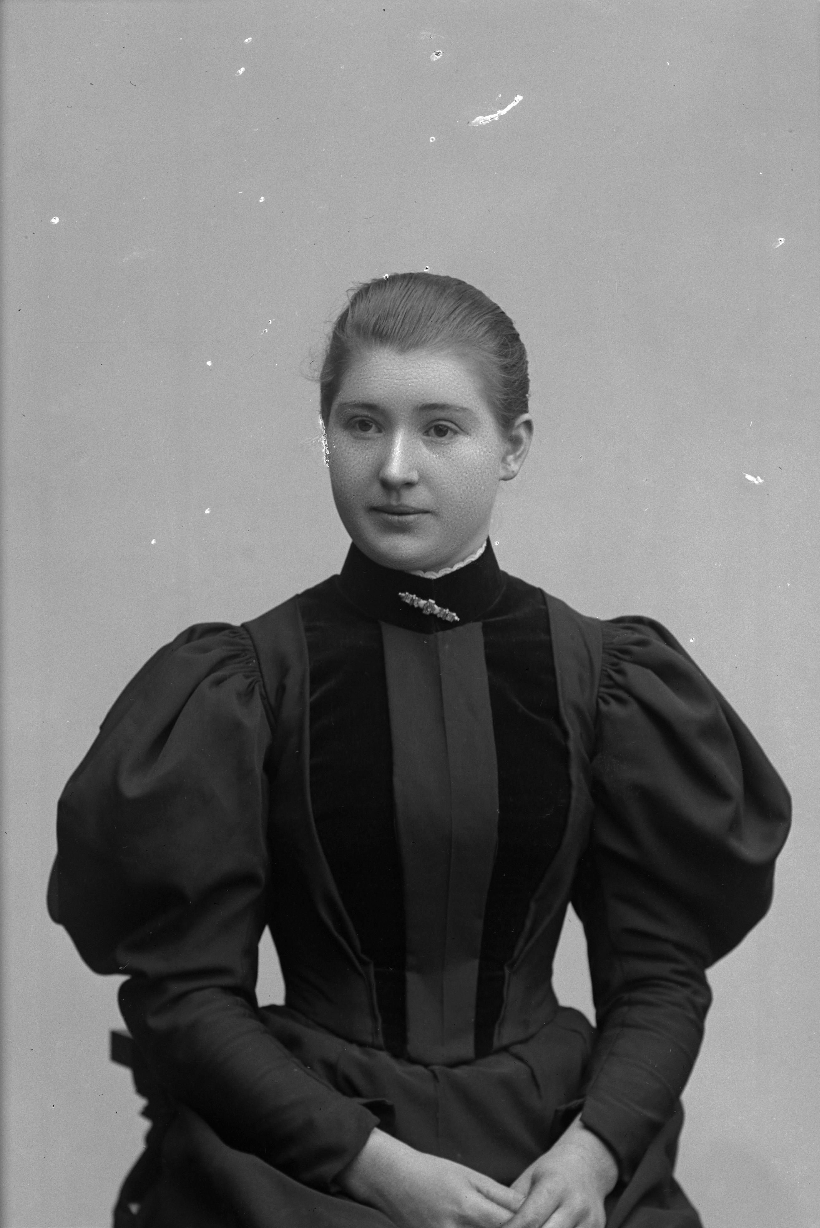 Beskrivning: Porträtt i halvfigur av Ida Olander.