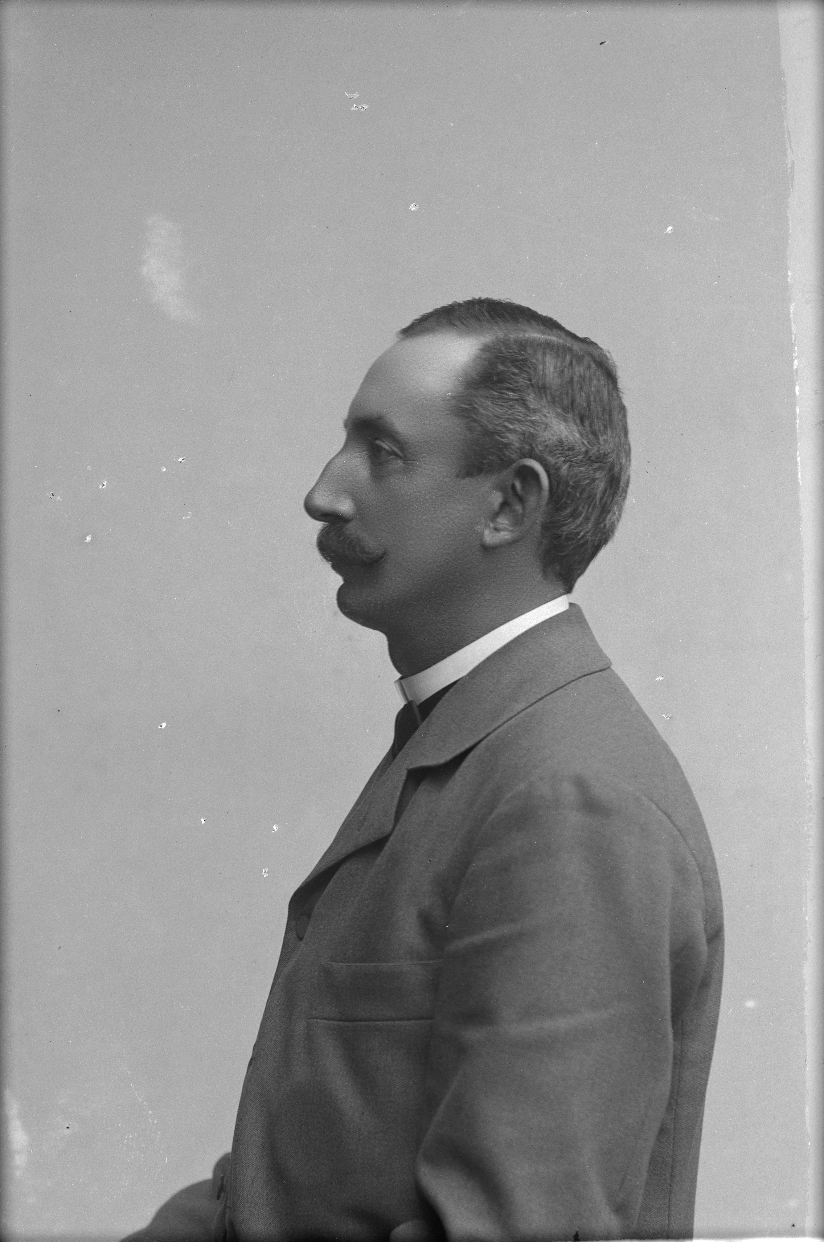Porträtt i halvfigur, profil, av herr Ruhe.