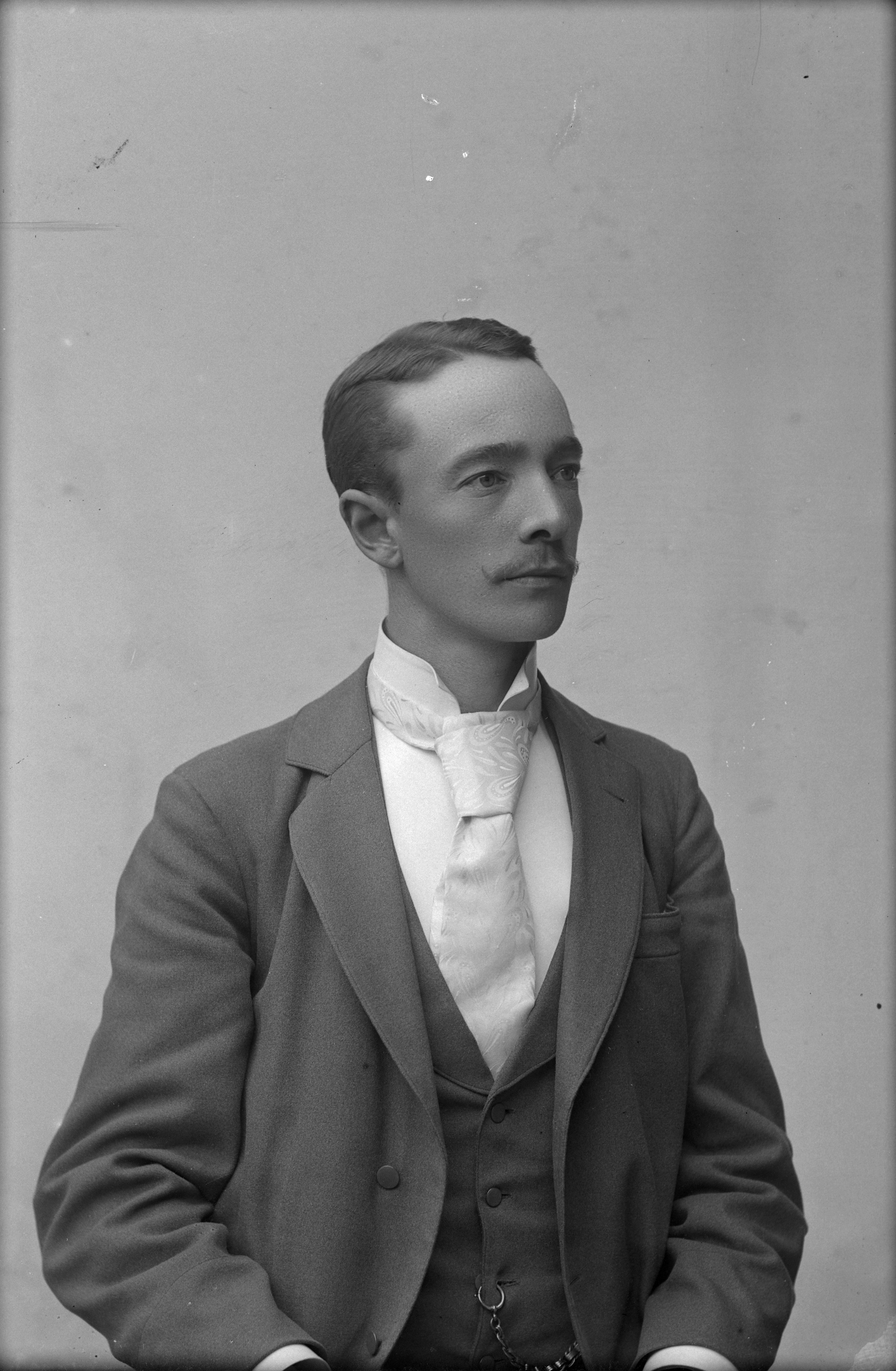 Beskrivning: Porträtt i halvfigur av A. Thorill.
