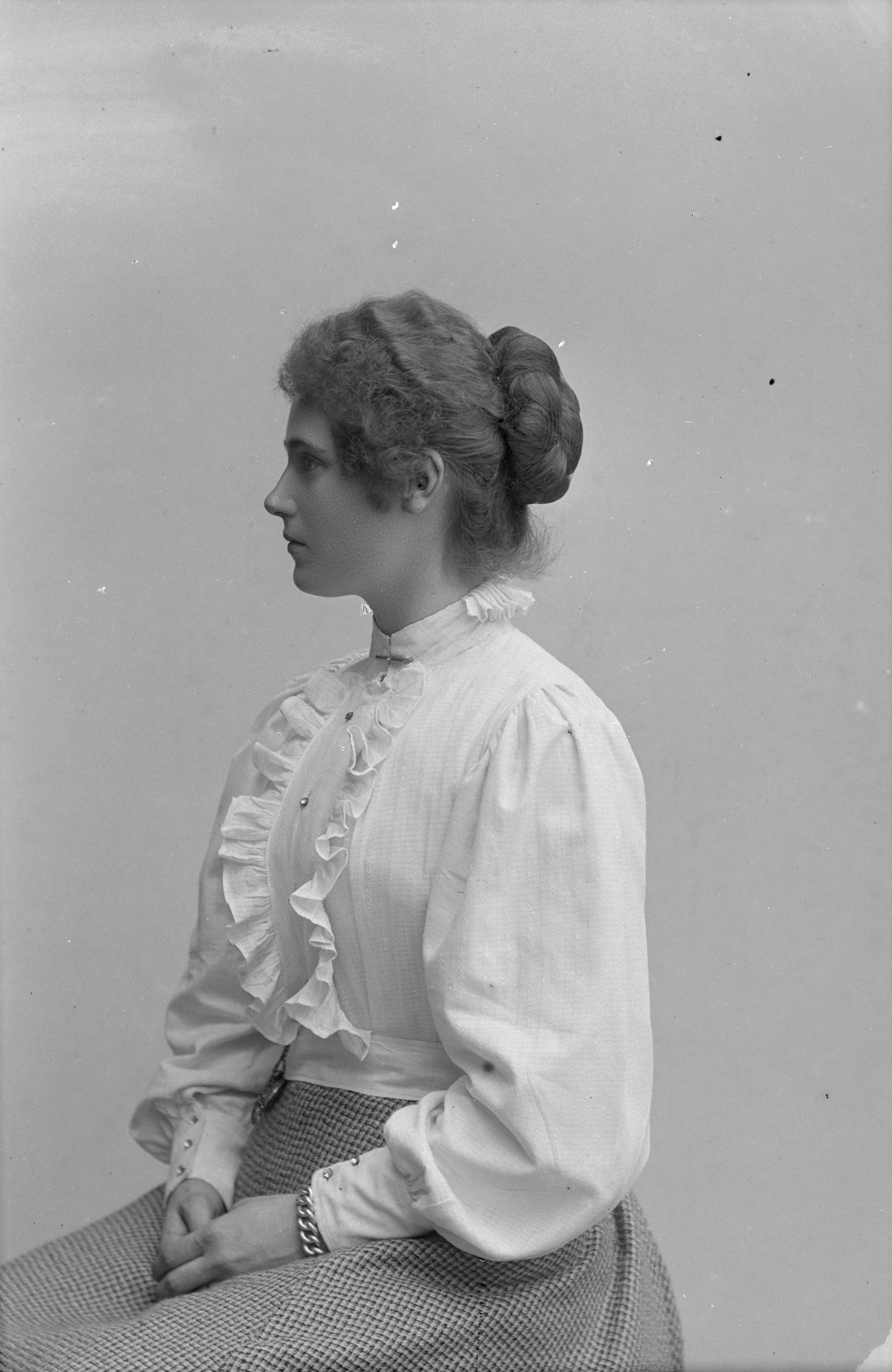 Porträtt i halvfigur, profil, av Olga Mamont.