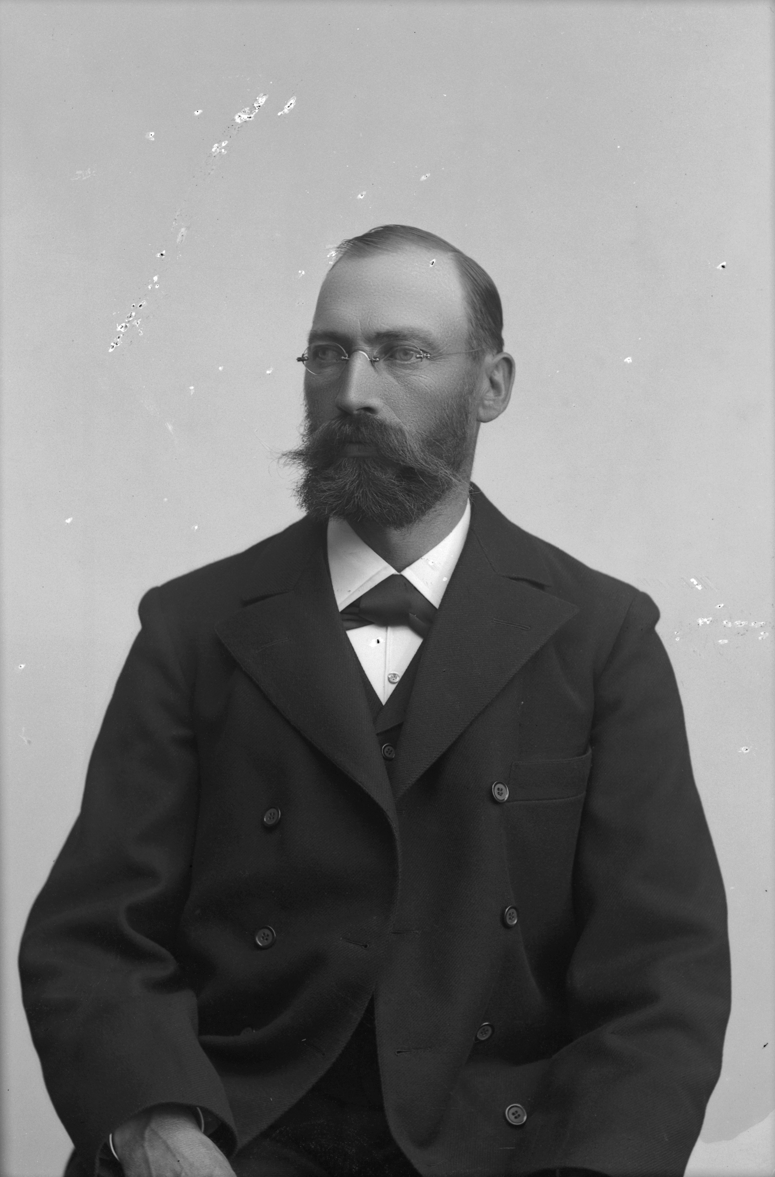 Beskrivning: Porträtt i halvfigur av N. G. Palm.