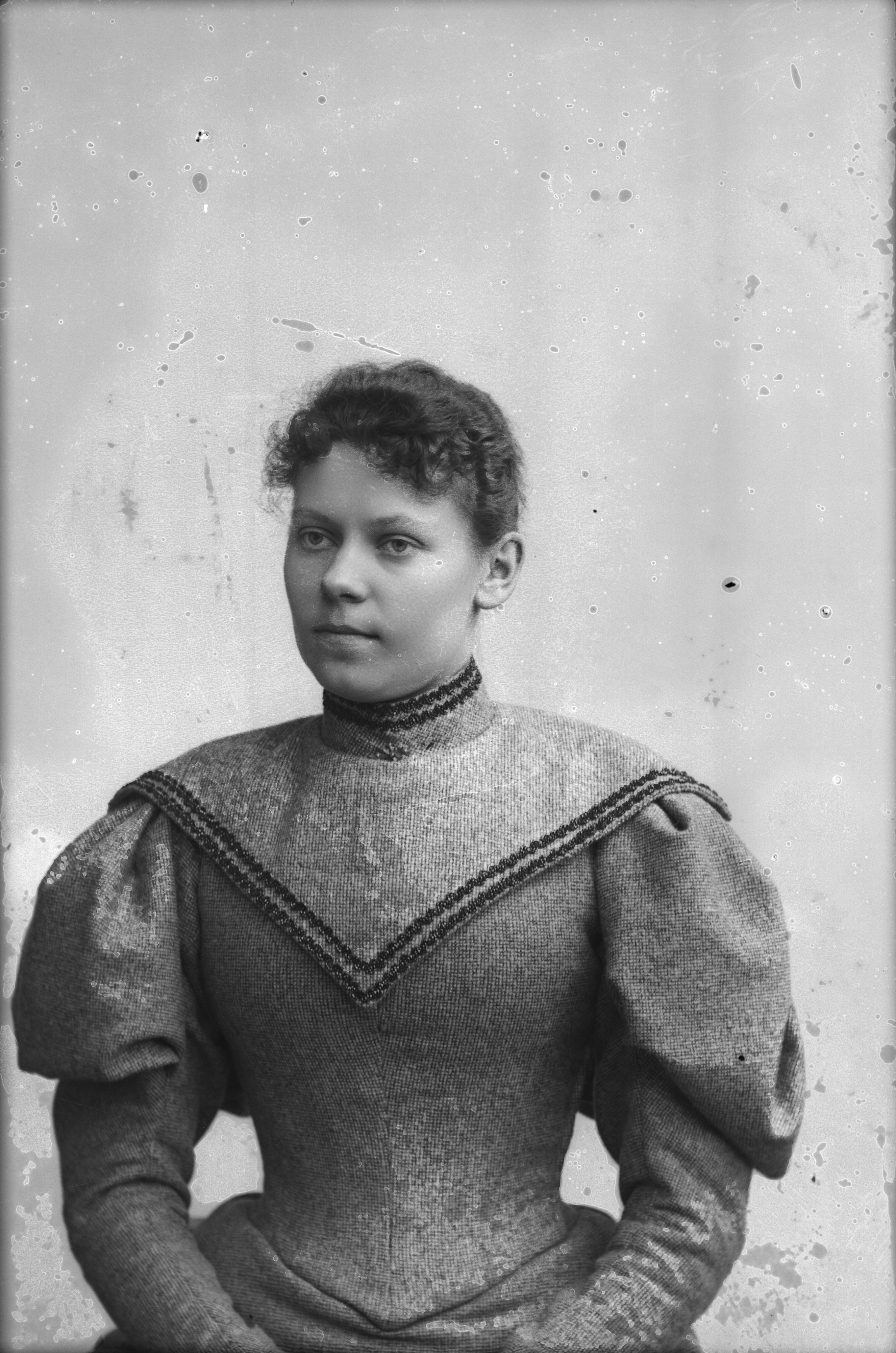 Beskrivning: Porträtt i halvfigur av fröken Simonsson.