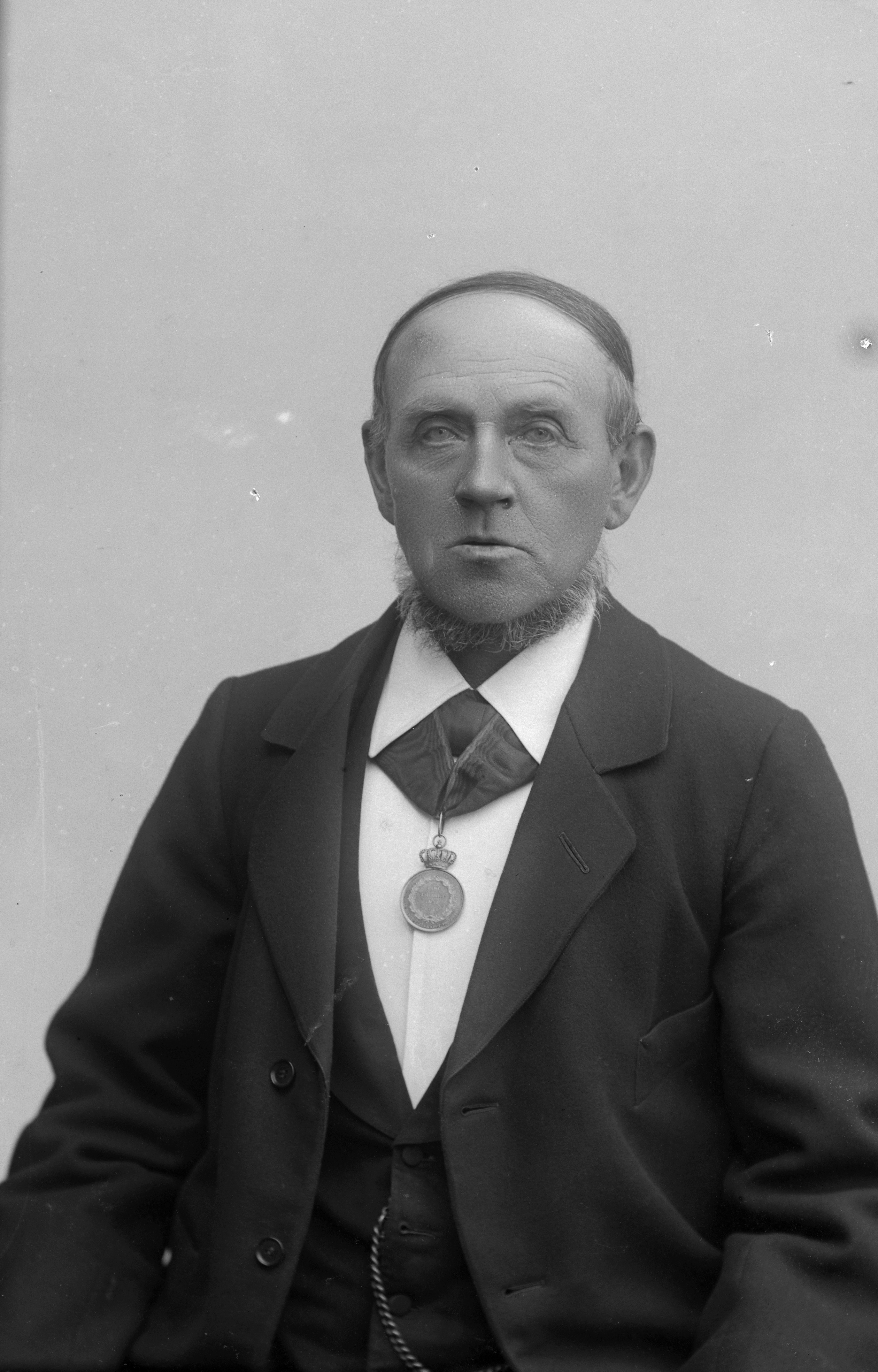 Beskrivning: Porträtt i halvfigur av Carl Nilson vid Ad. Faxe & Söner.