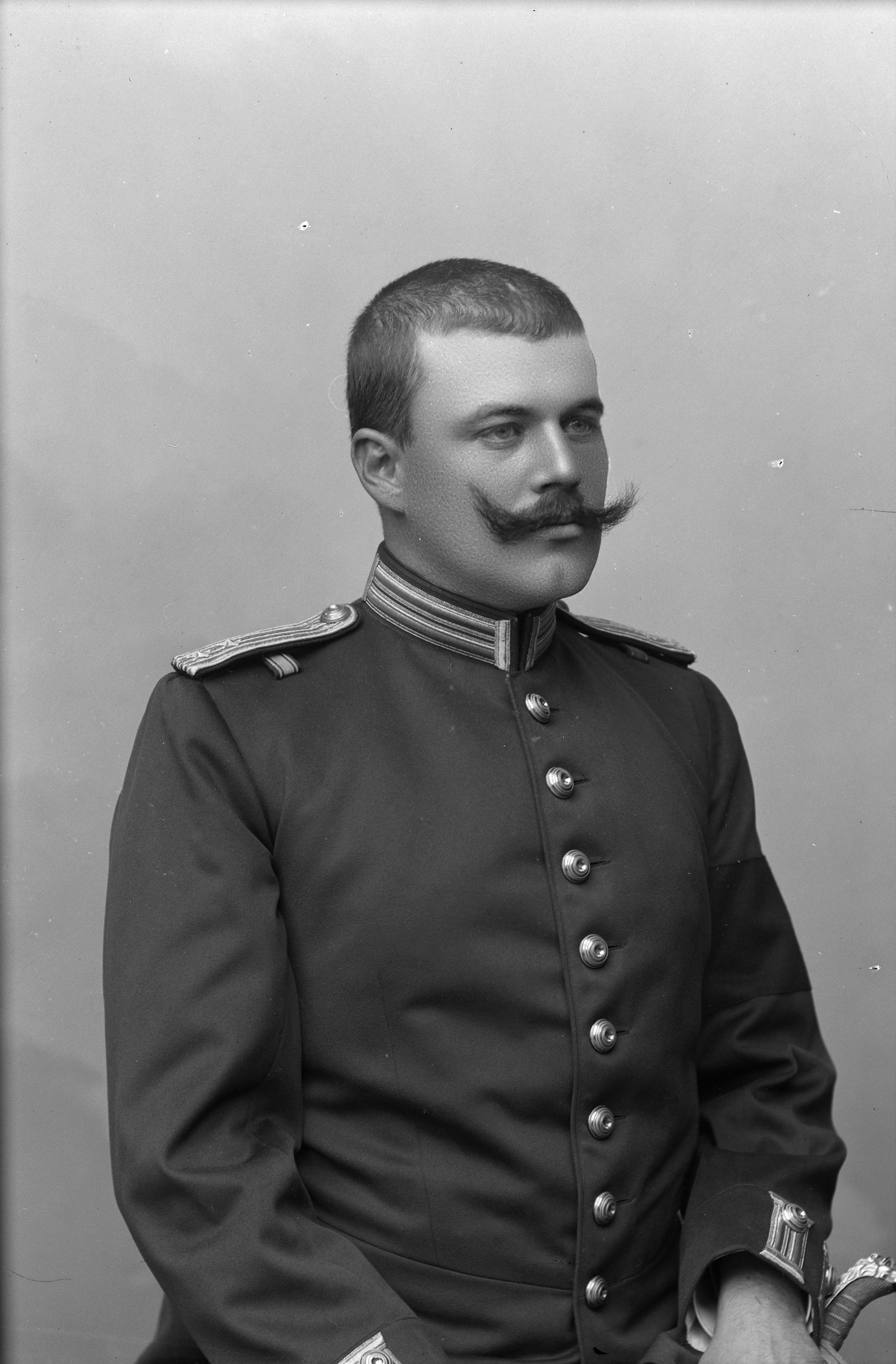 Porträtt i halvfigur av herr von Post, iklädd militäruniform.