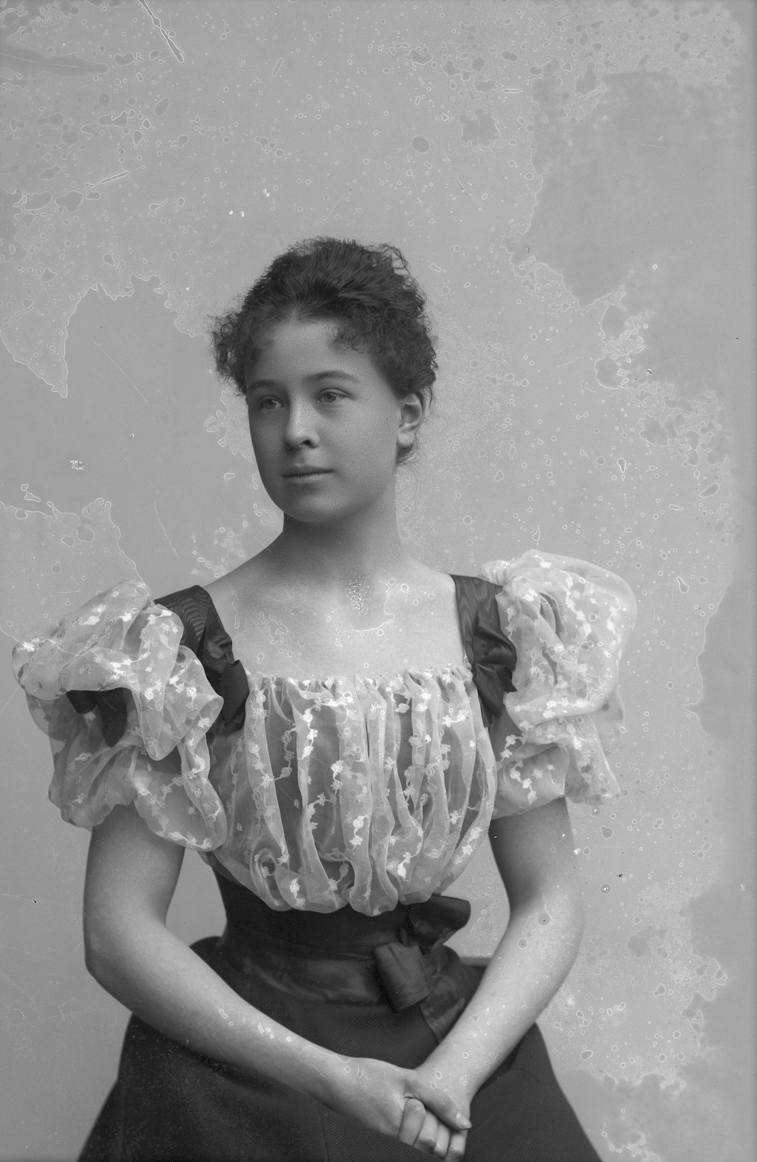 Beskrivning: Porträtt i halvfigur av fröken Berg von Linde.
