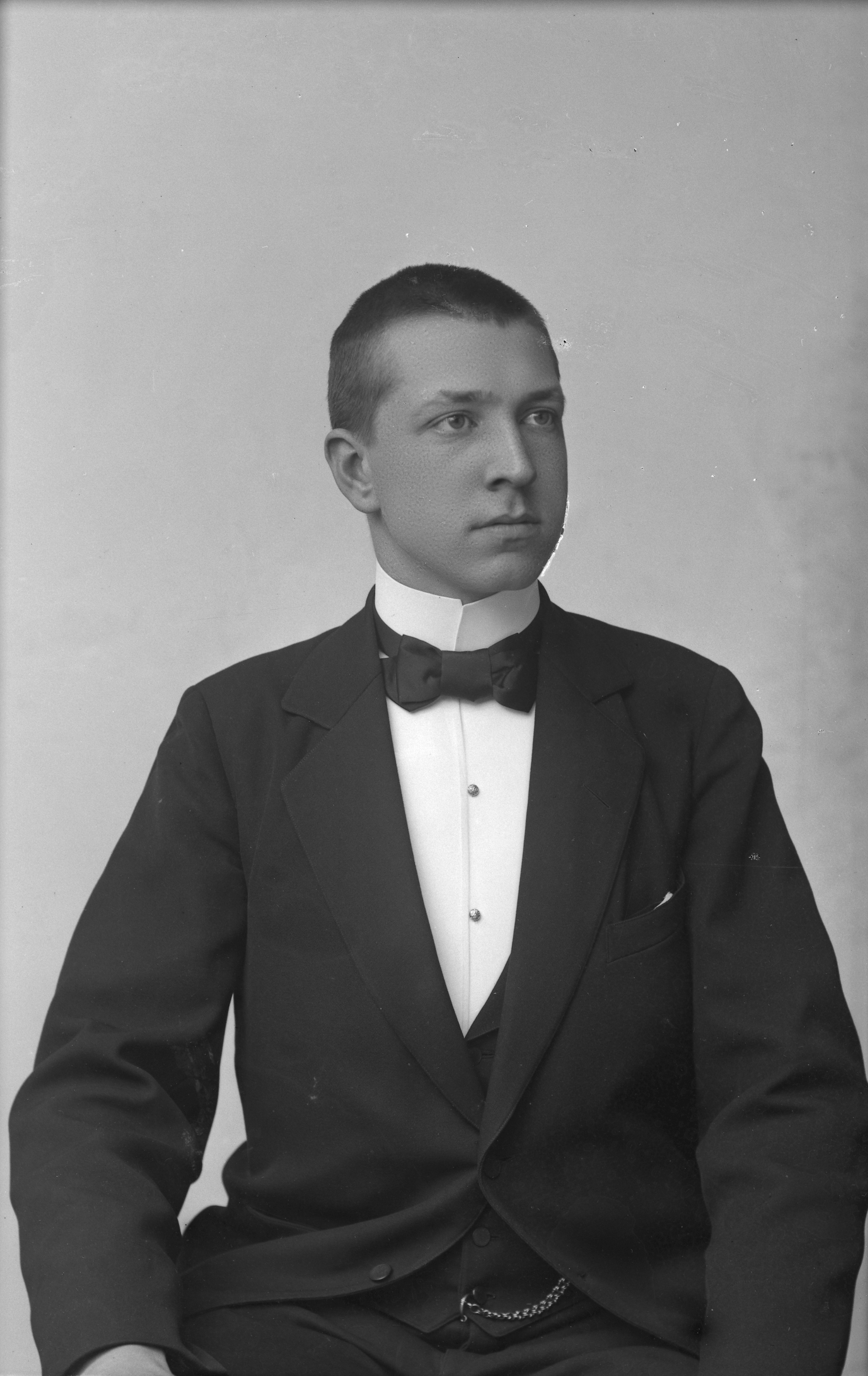 Porträtt i halvifigur av A. Mattsson, postelev.